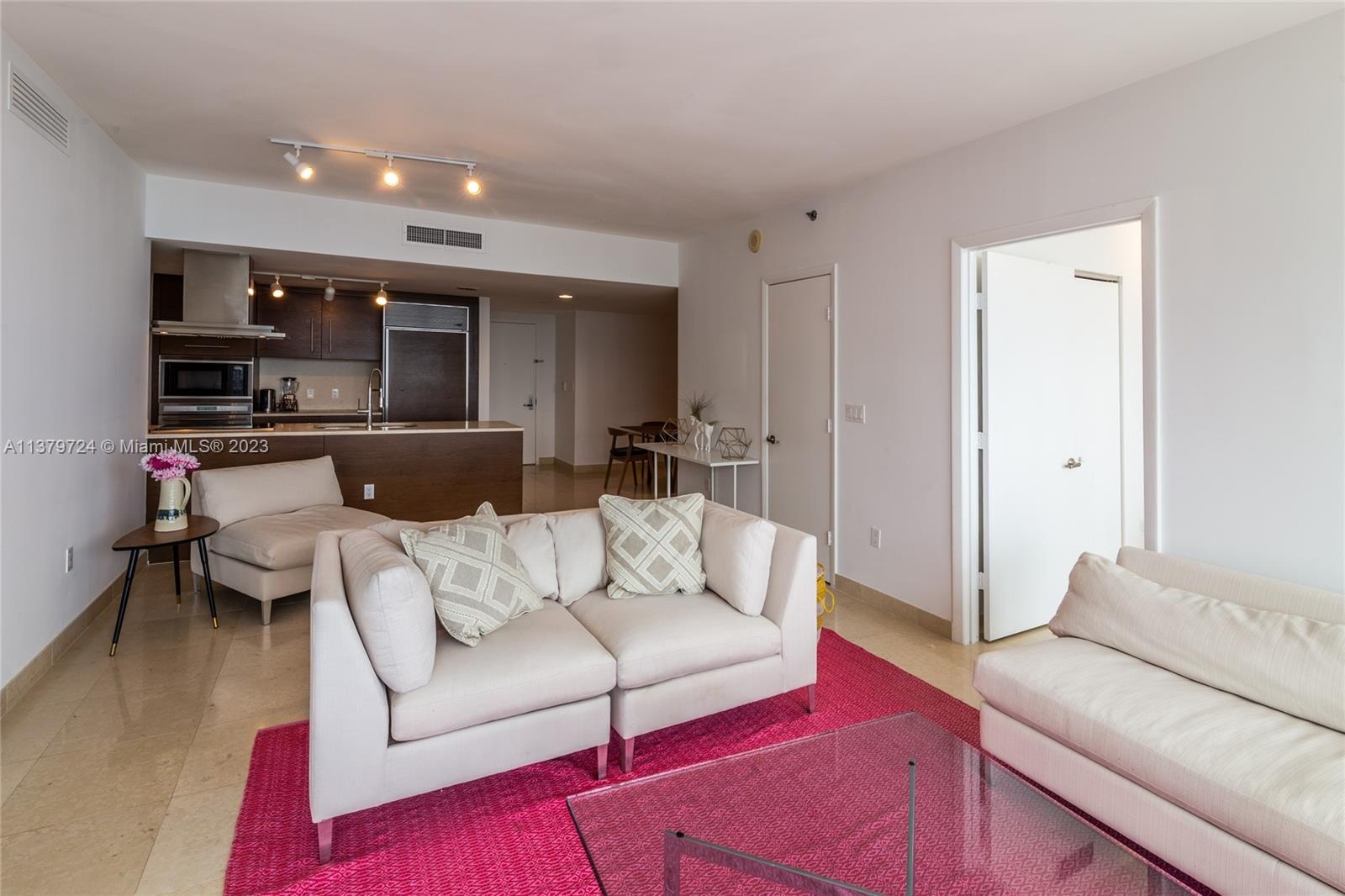 Furnished unit with 2/2/ split plan plus den with fantastic Bay views. beautiful marble floors. Modern kitchen with top of the line appliances. Blackout shades in Bedrooms. Washer & dryer in unit. One parking space. Tenant has a one year lease but agrees to negotiate with buyer if they want to terminate the lease giving 4 months notice. Tenant has three years living here.