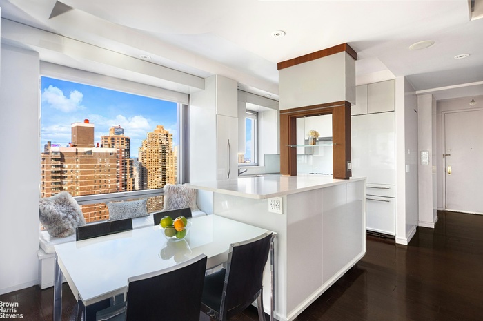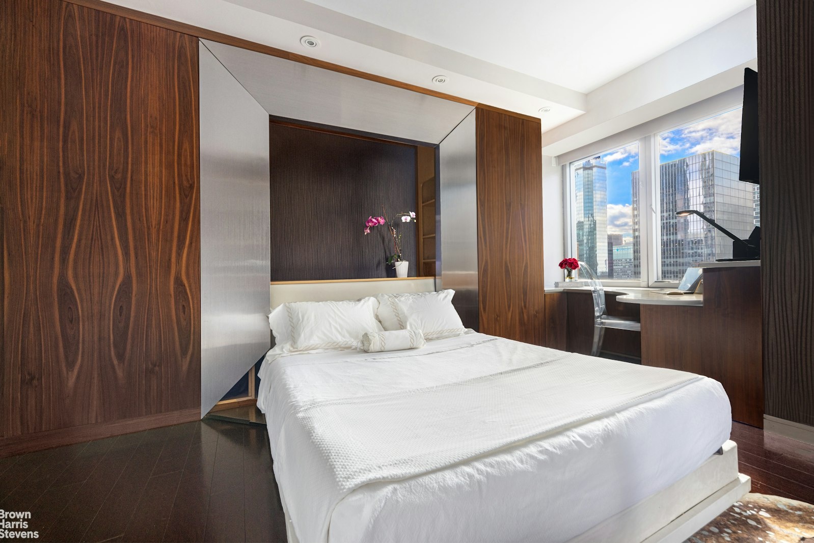BLOWOUT PRICE! Off Central Park & ONE BLOCK FROM BILLIONAIRES ROW! MOVE IN READY ! Serenity in the Sky w/ lifestyle living! This condo is flooded w/ light featuring south city views & West to the Hudson River too! Taken back to the studs, this E line has a rare TWO FULL BATHS! This owner is all about serenity, calm & spa like Chromotherapy living! The floor plan has been opened up, walls removed & plumbing & electric was upgraded to accommodate more bells & whistles & elevate this home to the next level. Calling all chefs! Unique to the building & the "E" Line this kitchen floor plate was totally redone including expanding & removing walls to create a much lighter feel. It features custom millwork cabinetry that was designed with deeper cabinets & there is a vented hood , instant filtered hot water & updated everything including the plumbing & gas lines so you can watch the clouds float by from your sink now! In addition to the oversized picture window there are high end appliances including Miele, Bosch and more! Residence 39E includes the sought after private new Miele washer dryer. There is also a new HVAC in the kitchen as well . There are 2 Full bathrooms also renovated and the primary bathroom was gutted to the studs . The primary bathroom feels like something out of a high end European SPA retreat! Even with the famous light therapy feature "CHROMOTHERAPY" plus there's Oversized Ovo silk deep soaking tub in glossy white and a rain shower (with waterfall option ) There are heated floors and a Duravit toilet too! The guest hall bathroom includes an oversized picture window with updated electric to accommodate an Ove brand bidet toilet. There is a walk in Marble shower, a porcelain sink and nickel hardware. The bedroom also taken back to studs w/walls removed and relocated to now allow looking at the river from your bedroom! It also features a stunning white built in desk with a Caesar stone top and wood cabinetry and best yet a dreamy oversized picture window to watch the clouds float by. There are smart home features throughout - voice command for lights, remote control shades and the Lutron brand smart light system switches. In addition there is the Control 4 - Sonos wired sound system and for those who dream of A/C in the winter you can have that 365 days a year too! Plus custom recessed overhead lighting! This condo building also brings their A game with an elevated lifestyle living experience as well! To start if you prefer privacy when your guests visit this Central Park place established condo (100% owned) has a rare perk! Central Park Place condo owners have access to 4 guest rooms in this condo! (for a nominal fee) . This Luxury condo also has tons of amenities managed by Elite brand. There is a state of the art fitness club with a pool to swim and a fitness center that includes free weights and work out rooms with lots of equipment such as Cybex, Precor, Stair master, a boxing bag , yoga room , massage room, a sauna and locker rooms as well. The health club center has a party lounge space with a kitchen for events and a landscaped outdoor deck/ terrace with patio furniture and city views too! There is a 24 hour service oriented staff and best yet no more waiting! They are in the process of installing 4 brand new 2025 elevators! Thank you for your patience! This condo is pet friendly and is located right off Central Park South with the train on the corner and 800 acres of nature , billionaires row, The shops at Columbus Circle with world class dining and envied international shopping experiences too! In addition you are near Nordstrom's, Lincoln Center, Whole Foods and convenient transportation out your door! You could not ask for anything more! (Taxes $942 per month reflect primary residence /$1150 is for non primary )