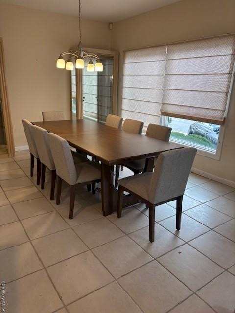 - Dining room featuring light tile patterned flooring and baseboards
