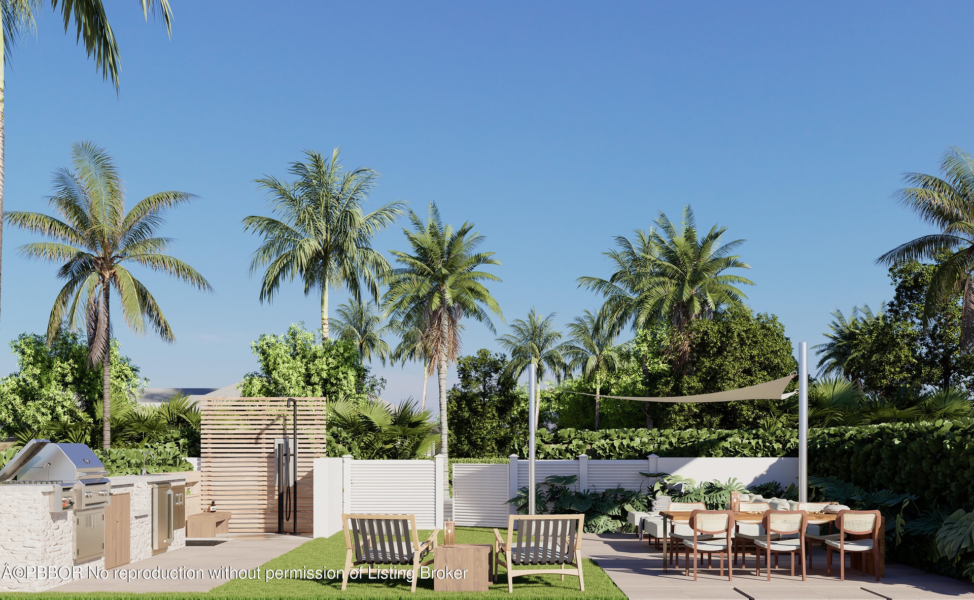 Located on a quiet street in Palm Beach's North End, this modern beach house offers 3,803± total square feet with four bedrooms and four and a half bathrooms. Set on a 12,206± square foot lot, the property features a large pool, spacious yard, and an air-conditioned two-car garage.
