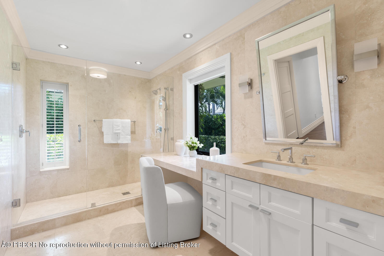 Located on a quiet street in Palm Beach's North End, this modern beach house offers 3, 803 total square feet with four bedrooms and four and a half bathrooms.