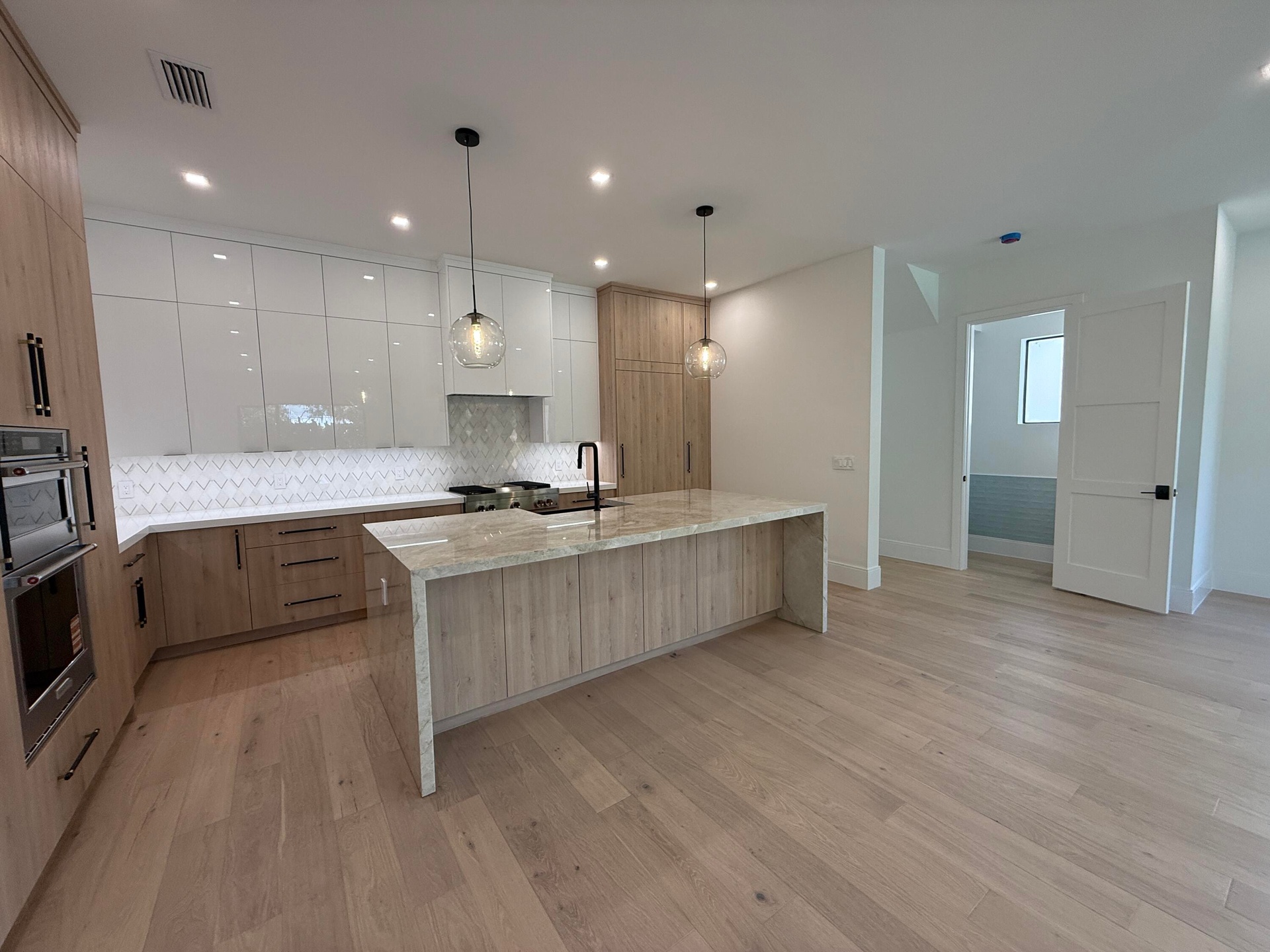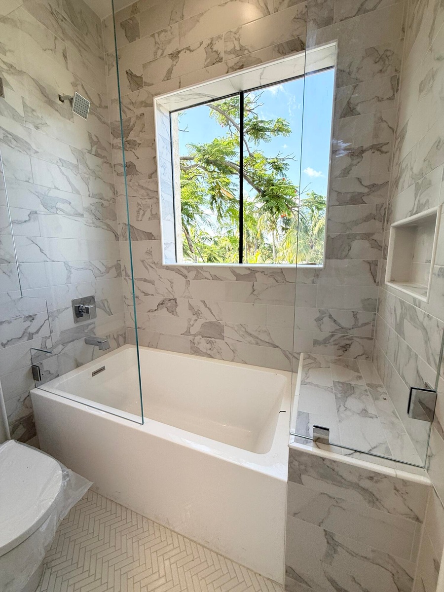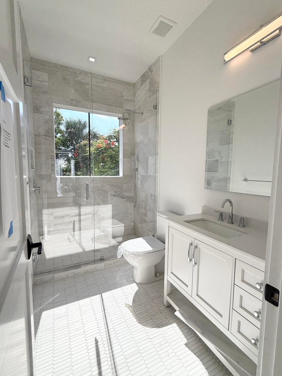 Brand New Construction. This sleek contemporary style home is on Auburn Drive in the Intracoastal community of College Park. Located one block from the waterway, this 4 bedroom 3.5 bath, over 2900 sf home has an open floor plan, European white oak floors throughout, stunning custom kitchen with a natural gas range, wood paneled refrigerator & dishwasher and large quartzite waterfall island open to the great room, marble & porcelain in the bathrooms, beautiful porcelain slab master shower wall. The master bedroom & bath open to the balcony overlooking the backyard and pool. 10 ft ceilings, 2 car garage, tankless water heater. The versatile 4th bdrm is now opened to a loft/den/office & can easily be closed in to a bdrm. All sizes/measurements are approx.
