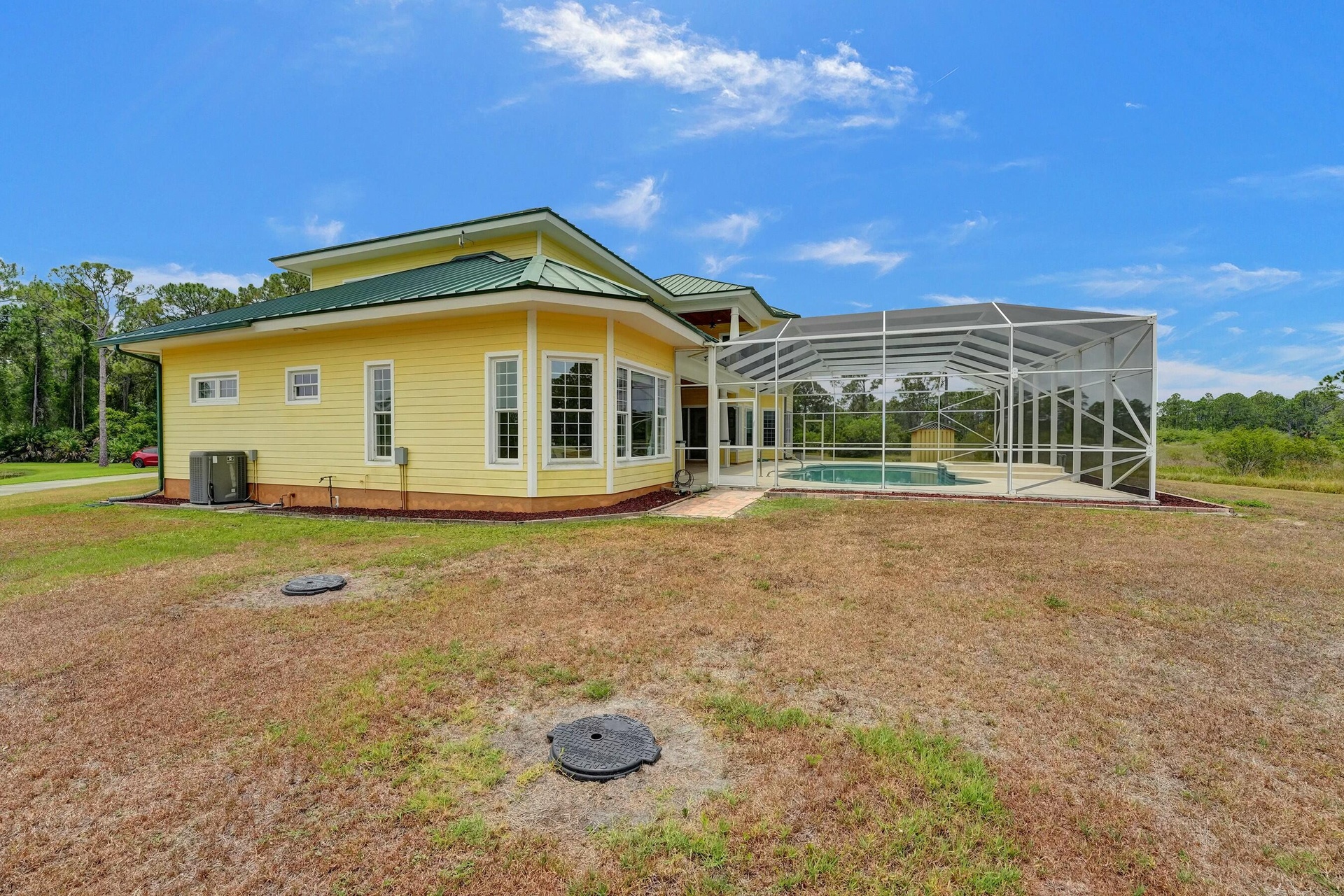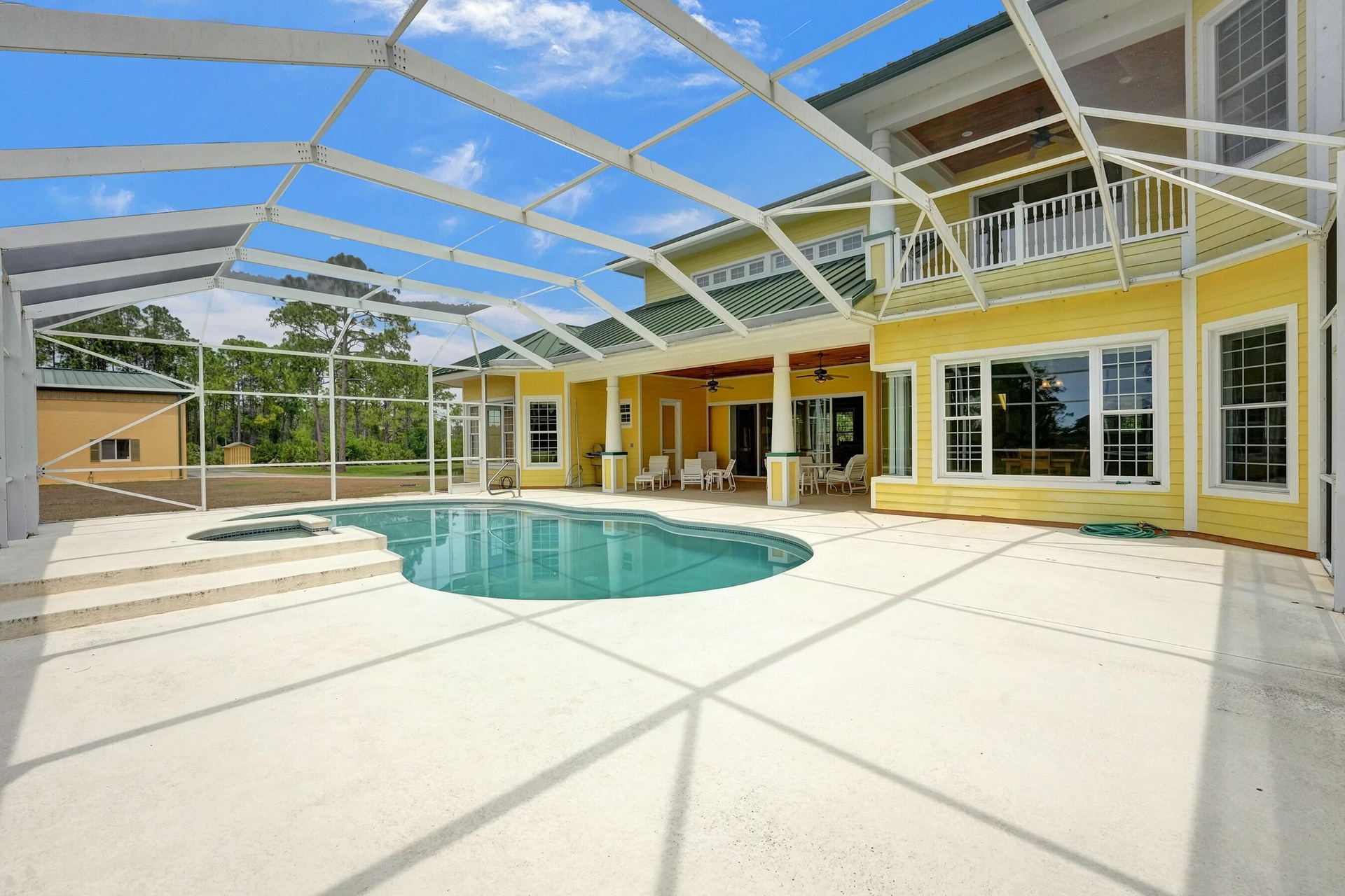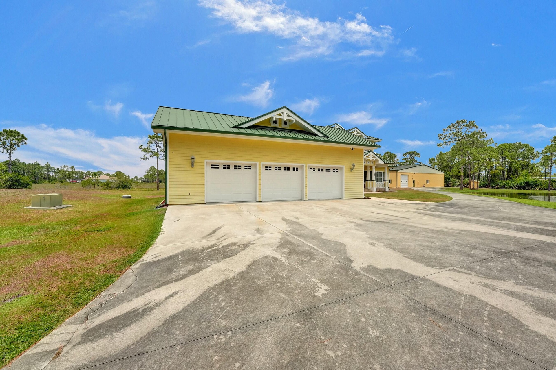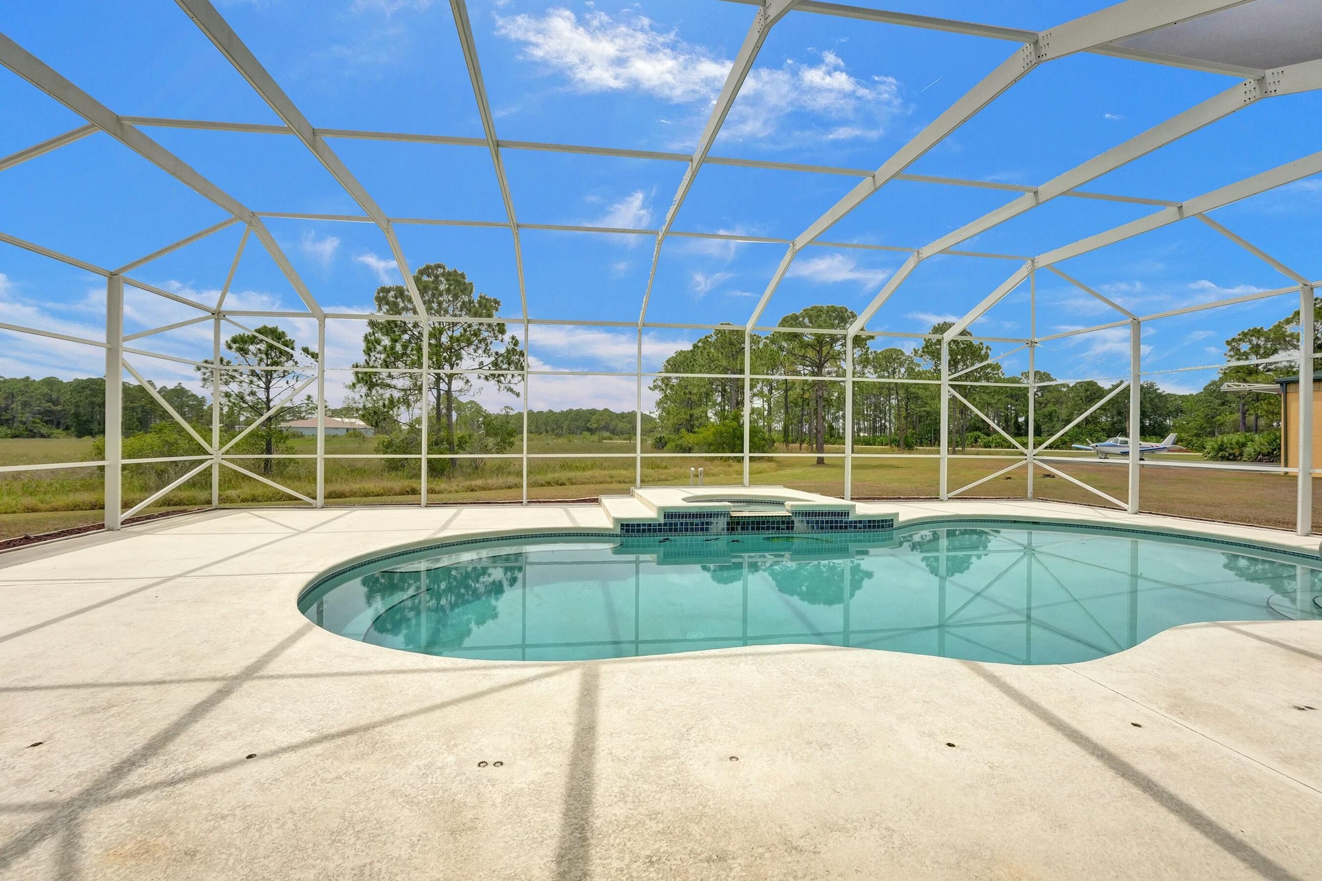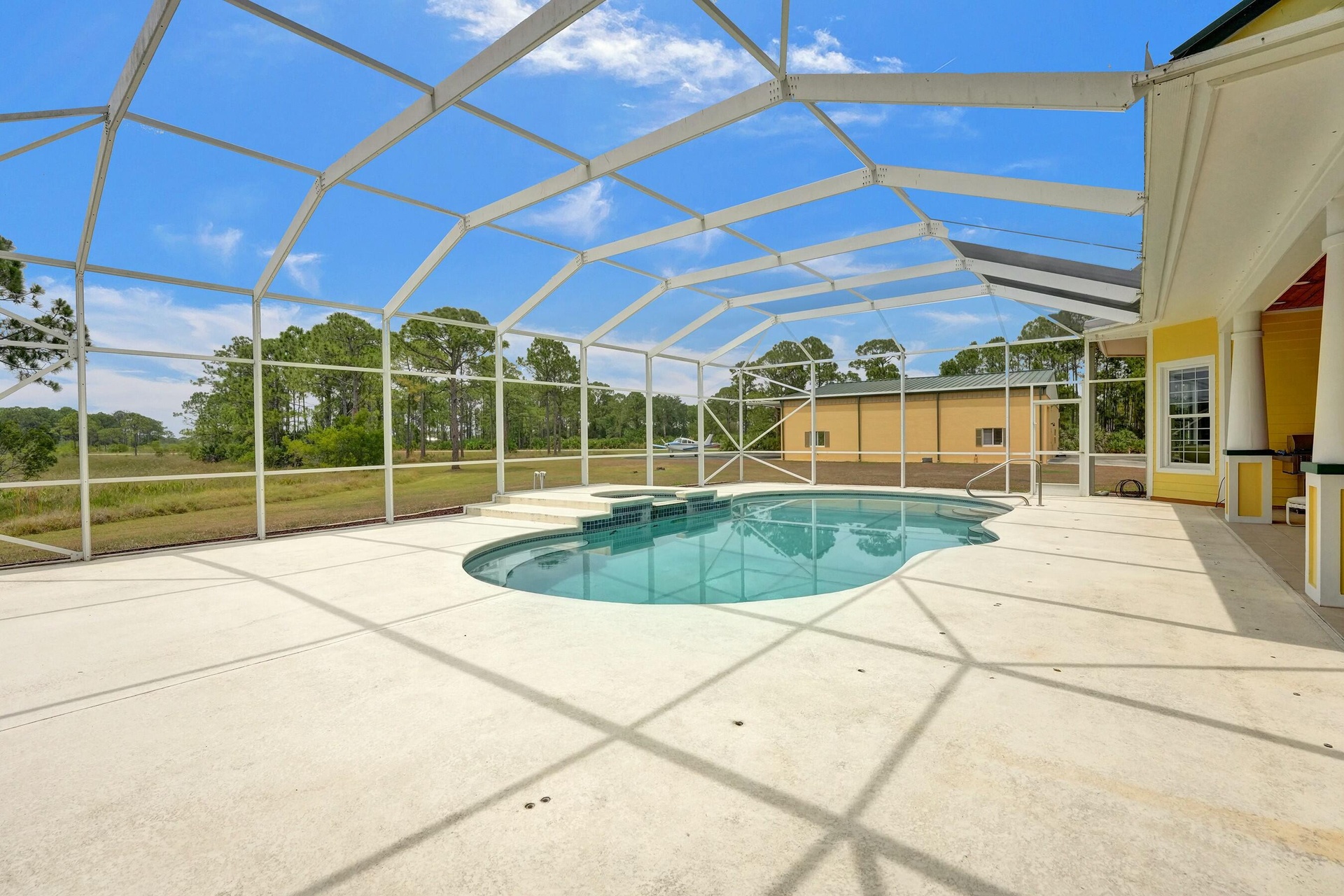 Welcome to an extraordinary aviation estate at 15350 Skyking Dr, located in the prestigious Treasure Coast Airpark (FL37) in Port Saint Lucie, FL. This remarkable property offers aviation enthusiasts direct access to a 4,067' x 48' paved and lighted runway (10-28), perfectly situated halfway down the runway for unparalleled views of aircraft taking off and landing. Property Highlights: Residence: - Spacious Living: 4 bedrooms and 3 baths, plus an outdoor cabana bath with a toilet and shower. - Expansive Grounds: 14.65 acres across 2 lots, providing ample privacy and room for outdoor activities. - Gourmet Kitchen: Featuring Slate countertops from Maine, a Miele oven, and an expansive walk-in pantry with abundant storage.