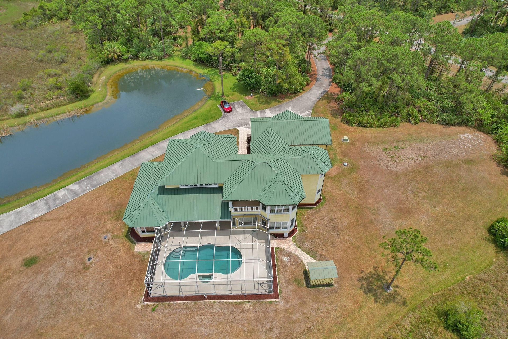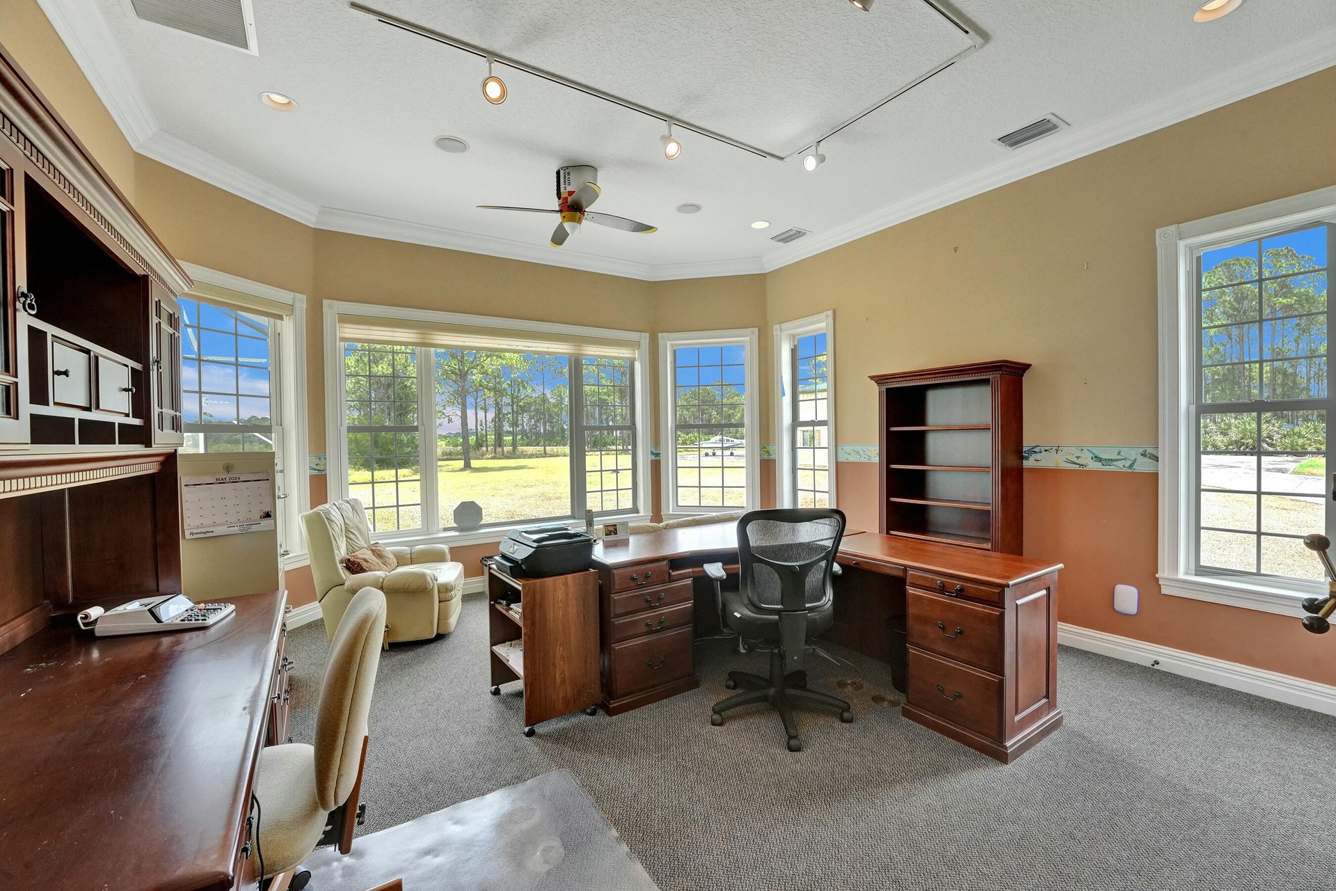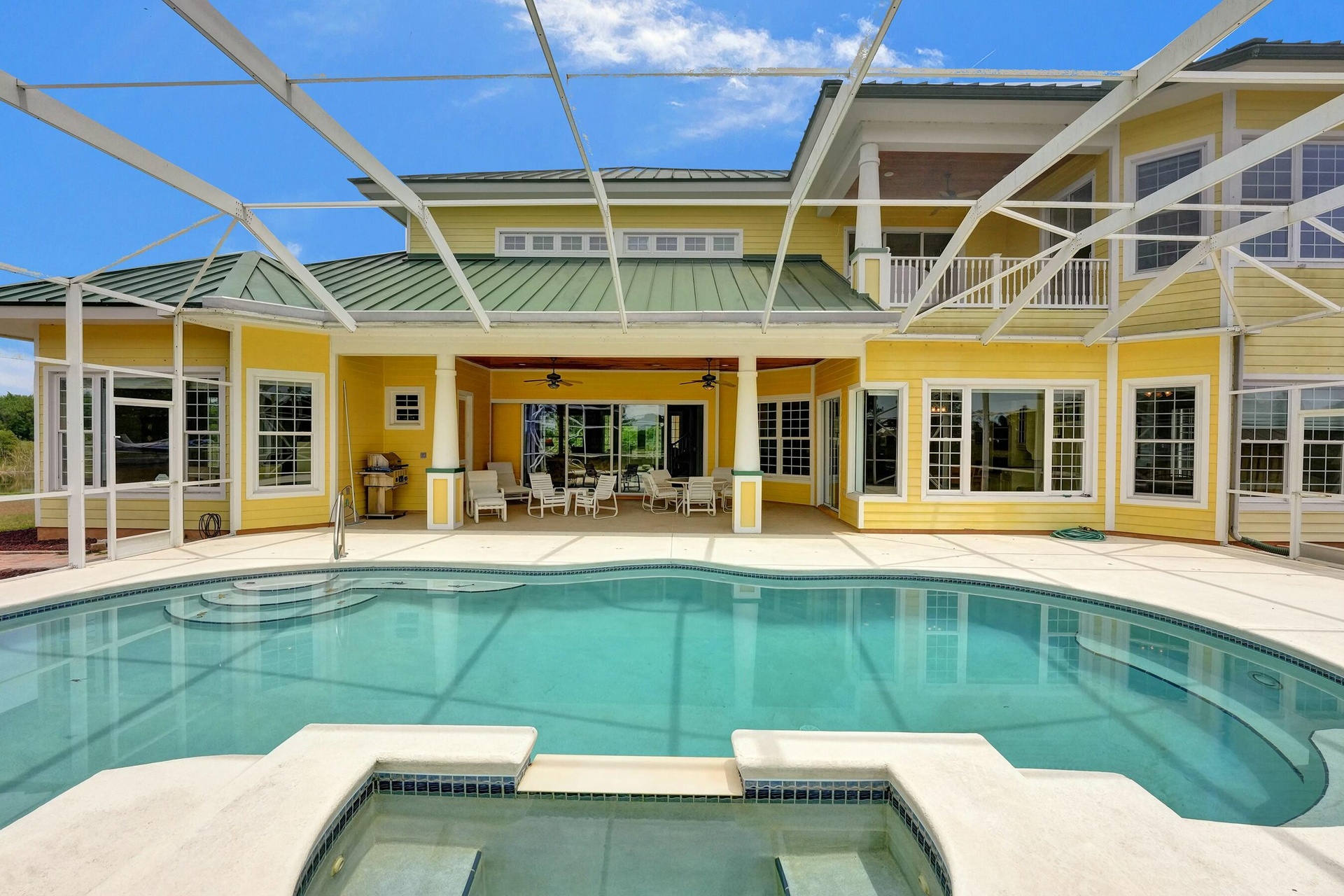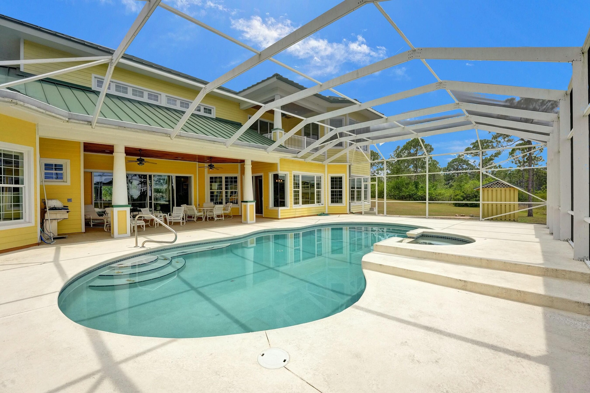 Welcome to an extraordinary aviation estate at 15350 Skyking Dr, located in the prestigious Treasure Coast Airpark (FL37) in Port Saint Lucie, FL. This remarkable property offers aviation enthusiasts direct access to a 4,067' x 48' paved and lighted runway (10-28), perfectly situated halfway down the runway for unparalleled views of aircraft taking off and landing. Property Highlights: Residence: - Spacious Living: 4 bedrooms and 3 baths, plus an outdoor cabana bath with a toilet and shower. - Expansive Grounds: 14.65 acres across 2 lots, providing ample privacy and room for outdoor activities. - Gourmet Kitchen: Featuring Slate countertops from Maine, a Miele oven, and an expansive walk-in pantry with abundant storage.