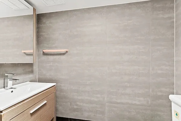 The modern kitchen is equipped with stainless steel appliances, including a dishwasher and microwave, making meal preparation effortless. Plus, you’ll enjoy the benefits of central air conditioning and high ceilings that create an airy, inviting atmosphere.