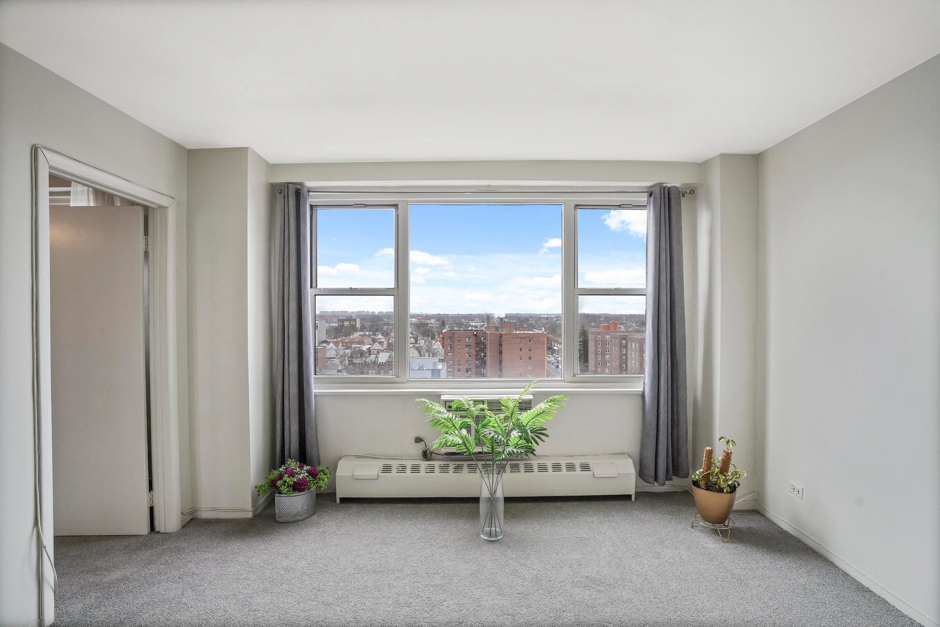Listed at an appealing price of $489,000, this corner unit on the eleventh floor benefits from unobstructed, panoramic views that stretch from Brooklyn to Manhattan. The design expertly maximizes natural light, with numerous windows featuring eastern exposure, creating a warm and inviting atmosphere throughout the day.