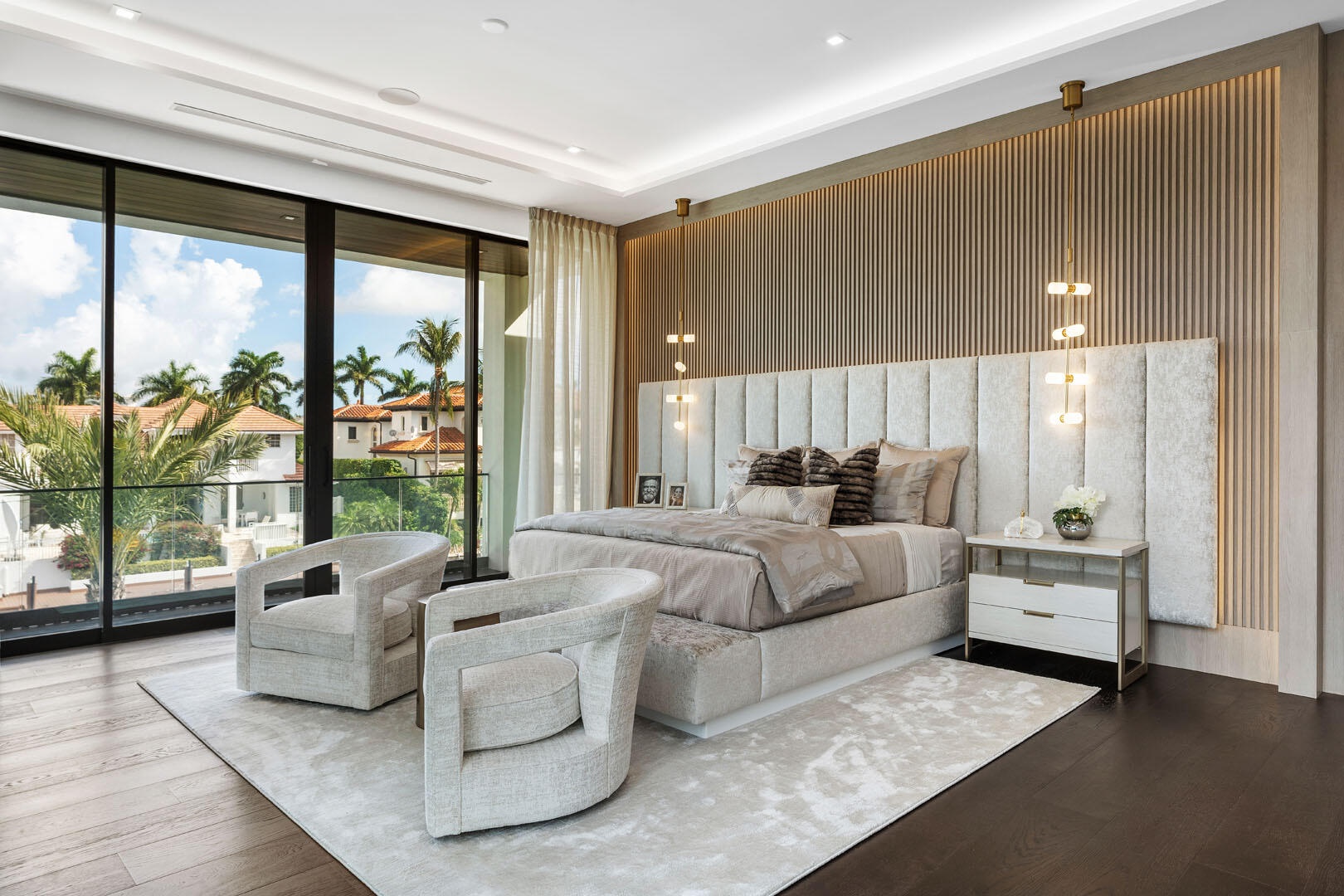 Discover a brand-new smart home crafted by Hanna Homes within the prestigious Royal Palm Yacht & Country Club! This custom estate is offered turn-key and fully furnished by Brown Interiors Design Group. With 6-bedrooms spanning over 9,500 square feet of luxurious living space, it seamlessly blends grandeur with the comfort of waterfront living. The property's centerpiece is a resort-style pool with a spa and sun shelf. The pool is complemented by an expansive covered loggia featuring a summer room and a fully equipped outdoor kitchen, perfect for entertaining or serene relaxation. Every element of this home is crafted for ultimate refinement, from the fully automated Crestron smart-home system to the state-of-the-art security features.