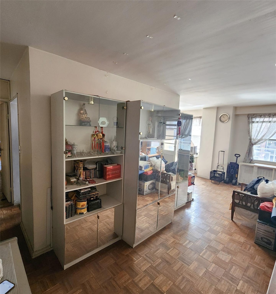 Location, location, location. This property is located at the center of Flushing, close to buses, subway, banks, restaurants, supermarkets. 1300 sqft three bedroom, two bath with balcony. Large living room with extra dining area. Windows facing East,South and North. Full of natural lights, master bedroom facing East south with full bath. Plenty closets in unit, Extra storage,bike room, laundry room are in the basement.