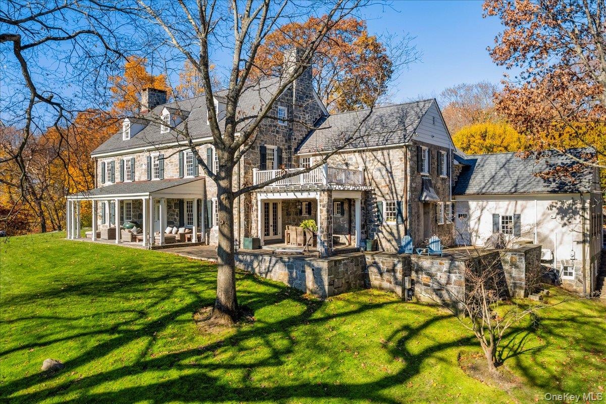 Unique and rare Irvington village stone home on a shy 4-acres nestled in the heart of the Ardsley Park neighborhood, only 45 minutes by train from Ardsley-on-Hudson station to Grand Central. As you enter the gated property and ascend the winding driveway to the hilltop park-like setting, you are transported to an oasis of serenity. Built in 1922 and featured at the time in Country Life magazine as the quintessential “small estate”, the stone house has been a piece of Irvington history, lovingly maintained with a thoughtful balance of period features and modern updates. The house has a decidedly European sensibility, with sophisticated interiors updated by the current owners with a leading architect and interior designer with a global client list. With 6 bedrooms (easily converted to 7) and 5.1 baths, this idyllic estate has a gated entrance, mature trees for privacy, stone walls to match the home’s exterior, a small pond, and a wraparound terrace with panoramic views. The renovated 6,353 sf interior is rich with historic charm and discerning design throughout, including timeless millwork, custom built-ins as well as hidden bookcases in the living room, original doors and hardwood floors, plus multiple fireplaces. Main-level highlights: front-to-back foyer, dining room with French doors to the terrace for alfresco entertaining complete with separate, covered outdoor dining area, butler’s pantry, and chef’s kitchen. Upstairs, you’ll find a sophisticated primary suite, 4 bedrooms (including private guest quarters), a large balcony, and laundry room. A separate bedroom and bathroom (formerly the chauffer’s quarters) offers a private suite with separate entrance from the driveway. The third level extends your living area with office spaces and full bath and 6th bedroom, with potential for a second bedroom or playroom, and spacious attic for storage., The lower level boasts a spacious laundry room with dual washers and dryers, sauna, playroom/exercise area and opportunities for expansion. The property has a gated entrance, full perimeter fencing, mature trees for total privacy, stone walls to match the home’s exterior, a small pond, and wraparound terrace with panoramic views. A wooden/gravel staircase and path at the rear of the property, where there is room for further expansion or outbuildings, leads to the first green at Ardsley Country Club and a short walk to idyllic Halsey Pond. Must be seen to be believed! Must See ! Additional Information: Amenities:Guest Quarters,Marble Bath,Pedestal Sink,Storage,ParkingFeatures:2 Car Attached,