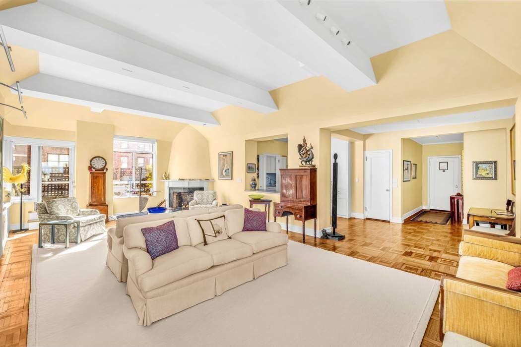 Located in one of Carnegie Hill's most iconic Art Deco buildings, this stunning, large, 5-room apartment is flooded with sunlight and has open views of Central Park from every room. One enters the apartment through a foyer leading into a striking open-plan living room/dining room with 11-foot ceilings, an unusual corner wood burning fireplace and access to a fully renovated kitchen and a 26-foot long terrace facing Madison Avenue. Also accessed through the foyer are the two large, high-ceilinged, bedrooms. The primary bedroom faces north and west, has a small dressing room, en suite bath, and a narrow terrace with direct park views. The second bedroom, now used as a study, is larger in size than the primary one. It has built-in bookshelves, a large window with northern views, three closets and an adjacent bathroom that also serves as the powder room for the apartment. This unusually attractive and charming property, with generously scaled rooms, high ceilings, and large windows with panoramic views, shows beautifully throughout the day and night. Truly a memorable apartment!