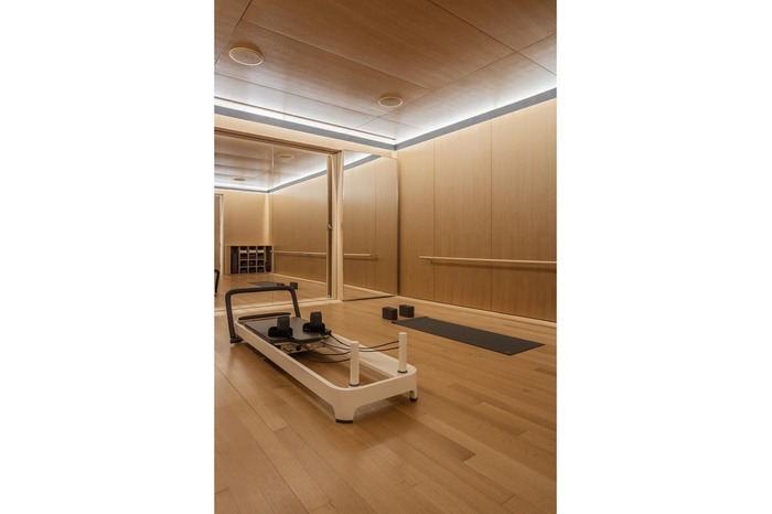 Completing the residence are a beautifully appointed powder room and a discreet utility closet with side-by-side washer and vented dryer. No detail has been overlooked, from the custom interior lighting design by Thierry Despont in collaboration with Schwinghammer, to the motorized Lutron solar shades throughout with additional blackout shades in each bedroom, to the supply of humidified and filtered fresh air throughout the home.