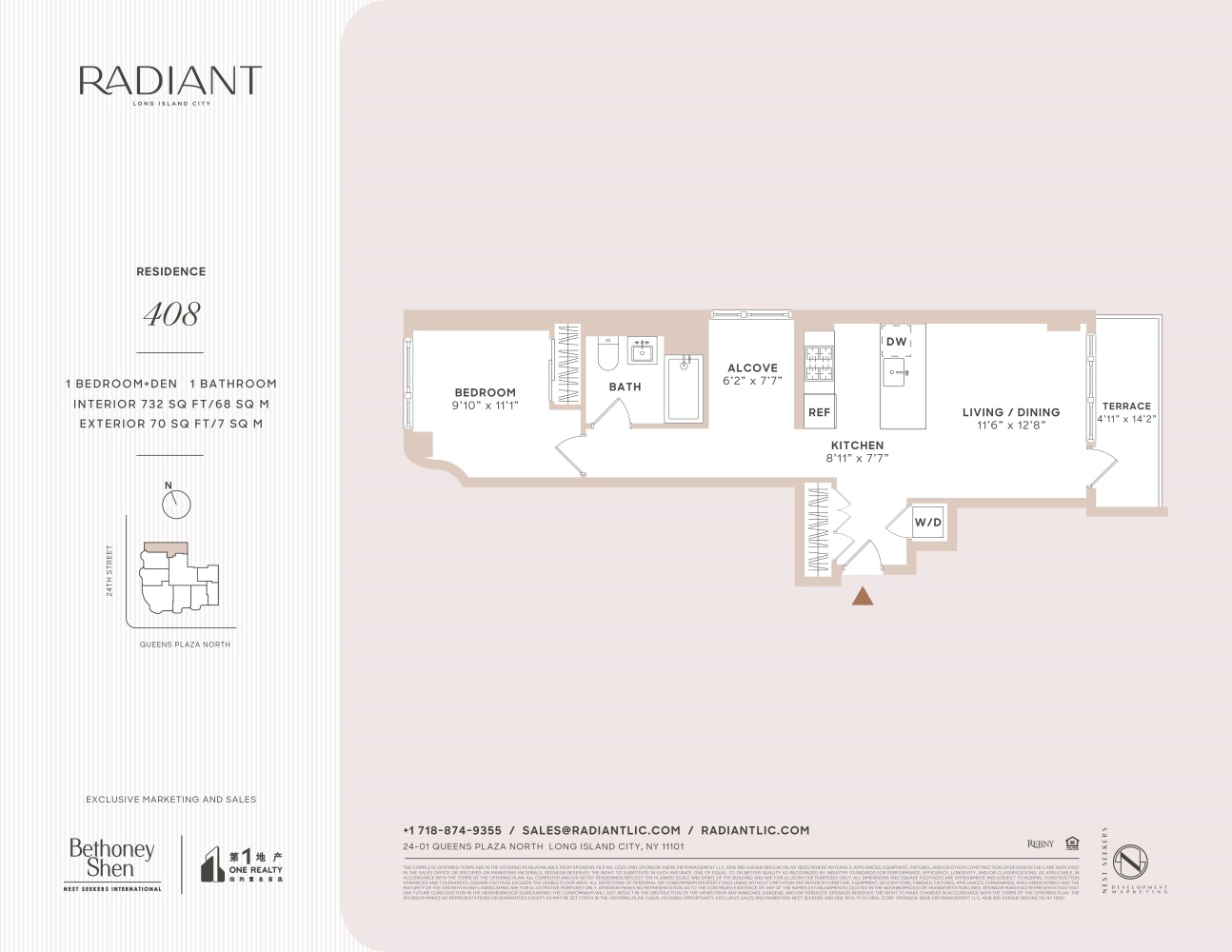 Welcome to this brand new 1-bedroom, 1-bathroom home with an office alcove and private outdoor space at Radiant, a striking new luxury condominium and one of the most architecturally significant buildings to ever come to Long Island City.