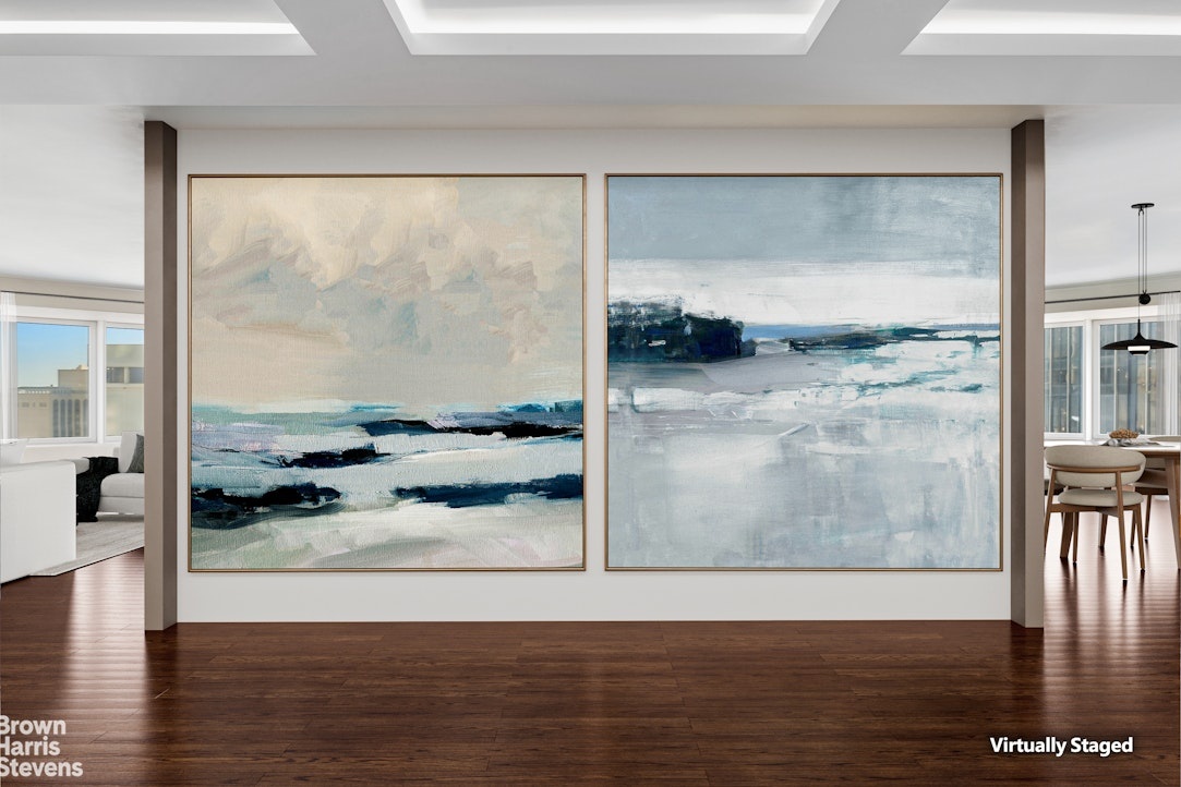 At the heart of this extraordinary residence is a 53-foot open-concept living, dining, and kitchen space, ideal for both grand entertaining and intimate gatherings. Sixteen oversized windows flood the space with natural light, providing breathtaking north, east, and south triple exposures, with partial views of Central Park enhancing the sense of openness. Bespoke millwork, custom finishes, and designer fixtures create a seamless flow of refined beauty throughout. The chef's kitchen is a standout, boasting marble countertops, custom cabinetry, and premium appliances, making it as visually stunning as it is functional.