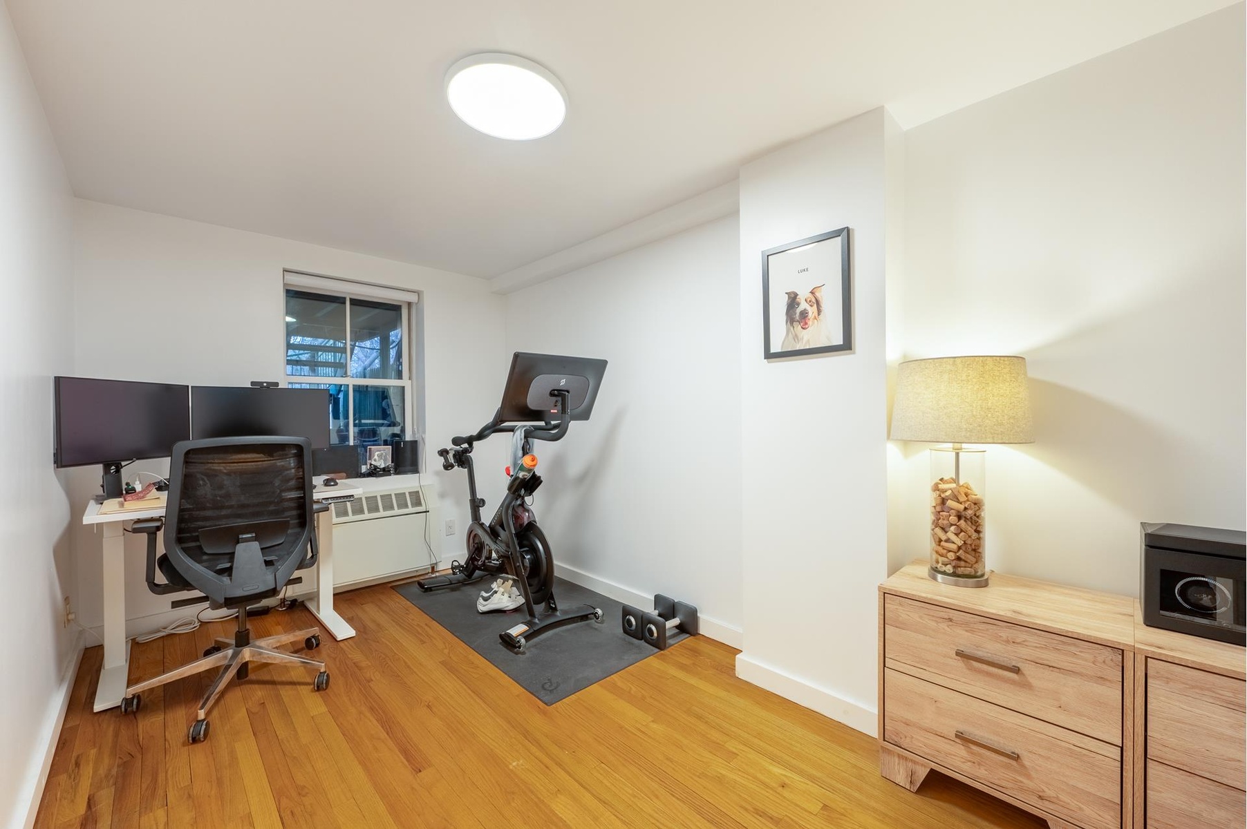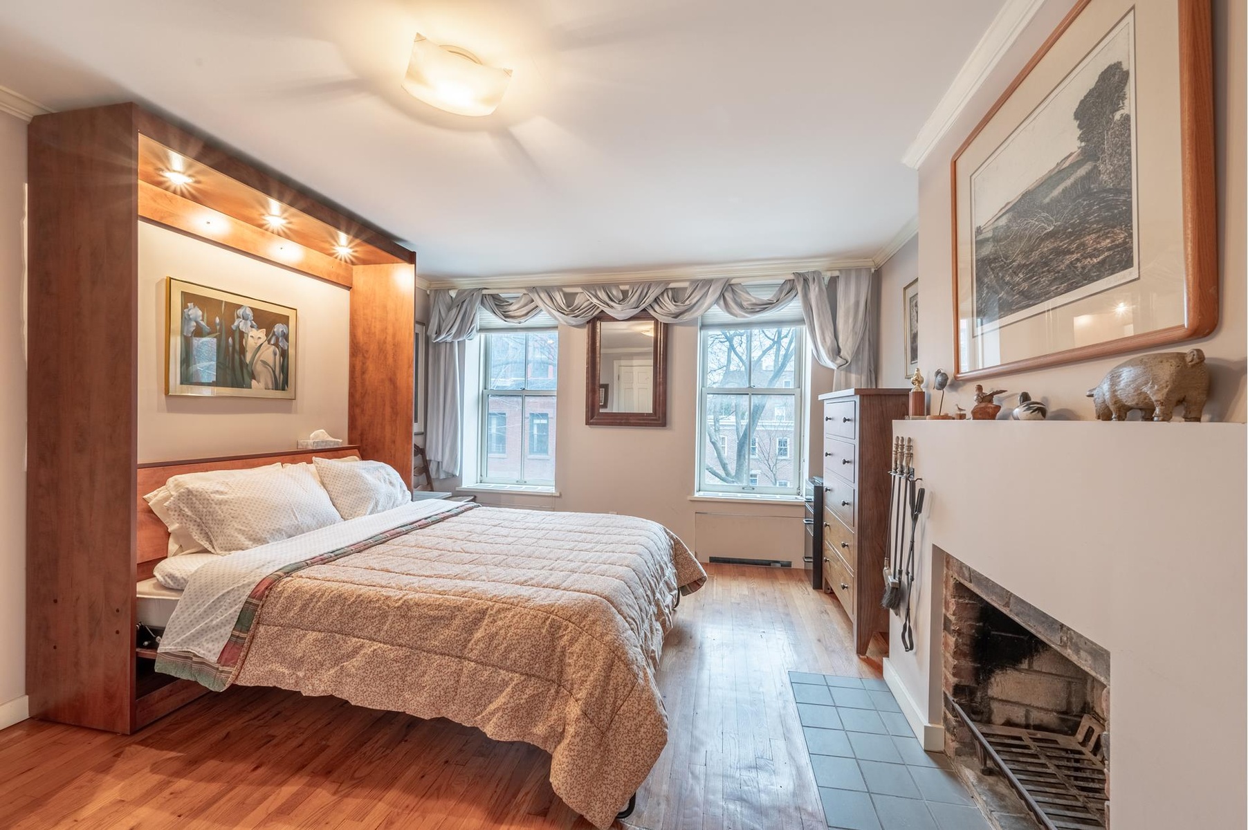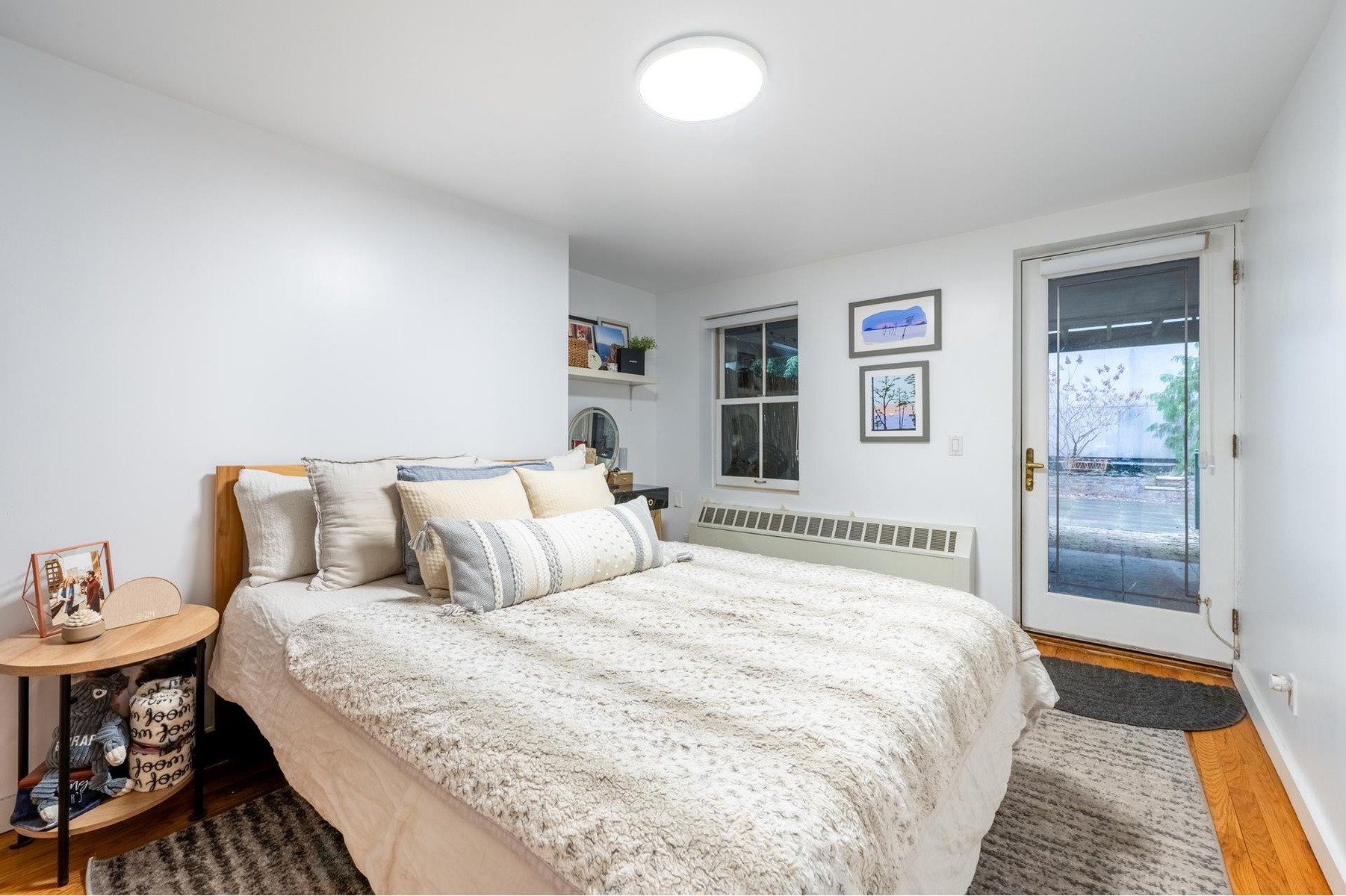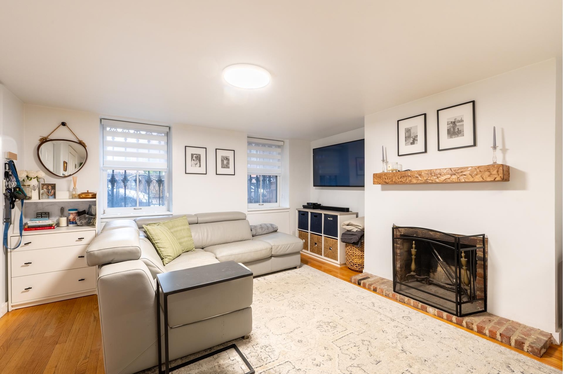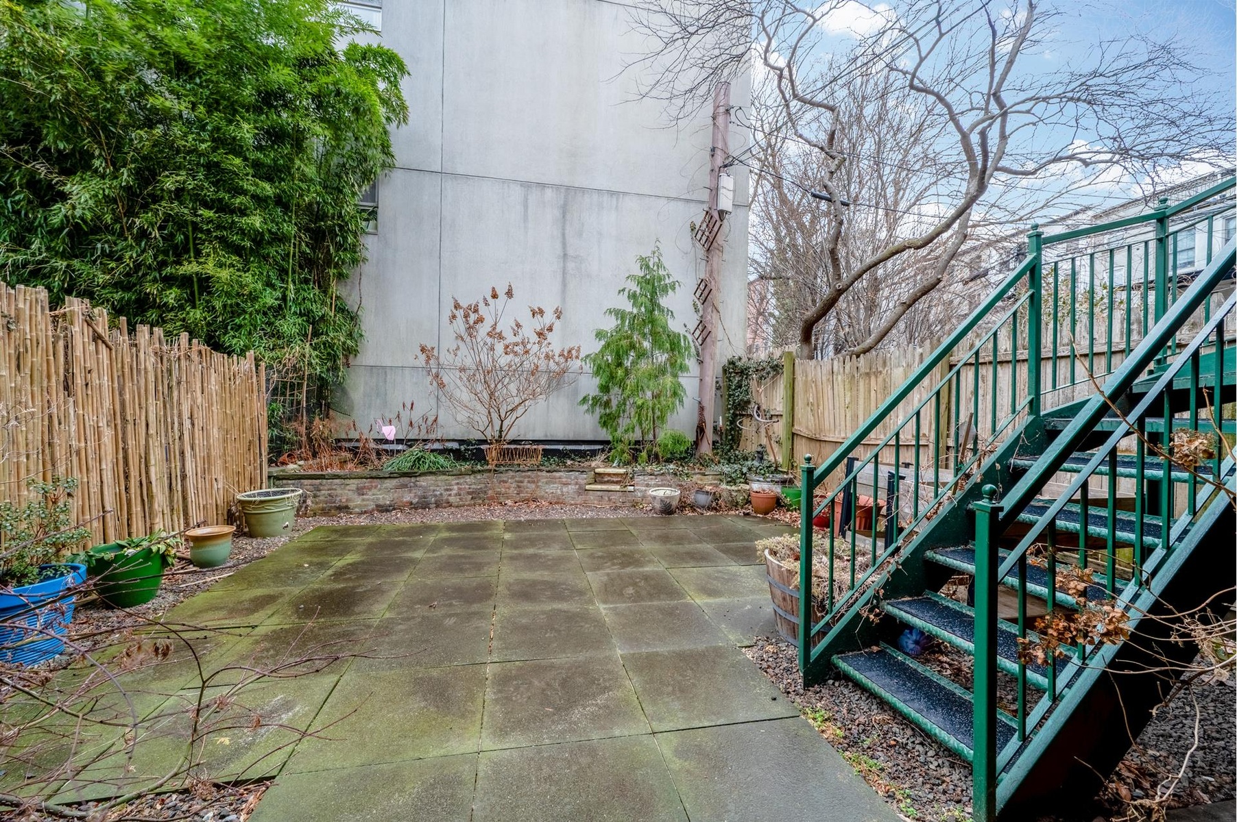 Under the stoop is a convenient vestibule that provides you private access to the cellar, and the entry to the garden apartment. Up front is the living room with a working fireplace, apartment sized pass-through with a dishwasher, coat closet, and bathroom with a tub shower. The rear bedrooms both have nice closets, and provide access to the apartment "s patio. The apartment has always been rented, but could be adapted for use as a guest space, work space, or other uses.