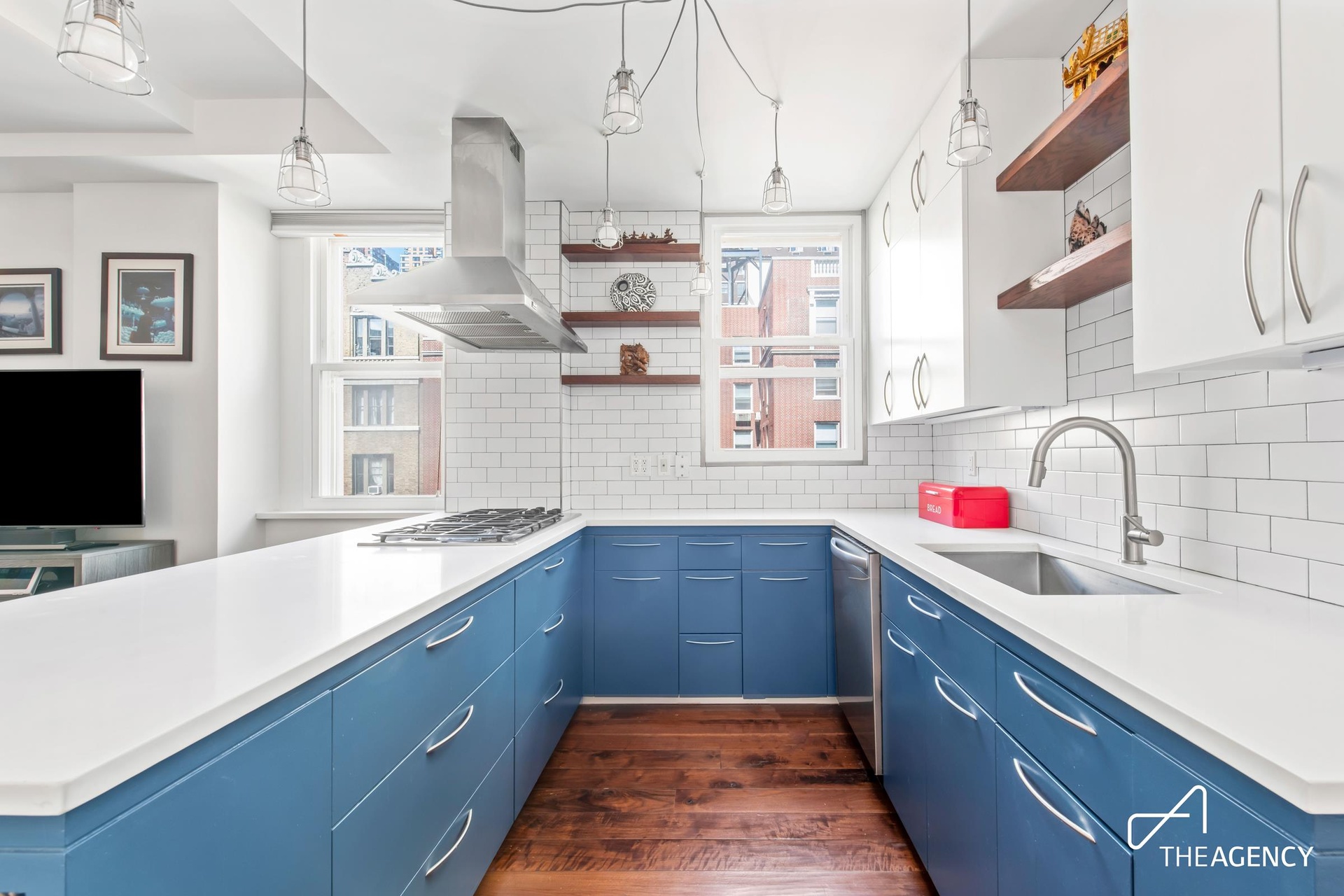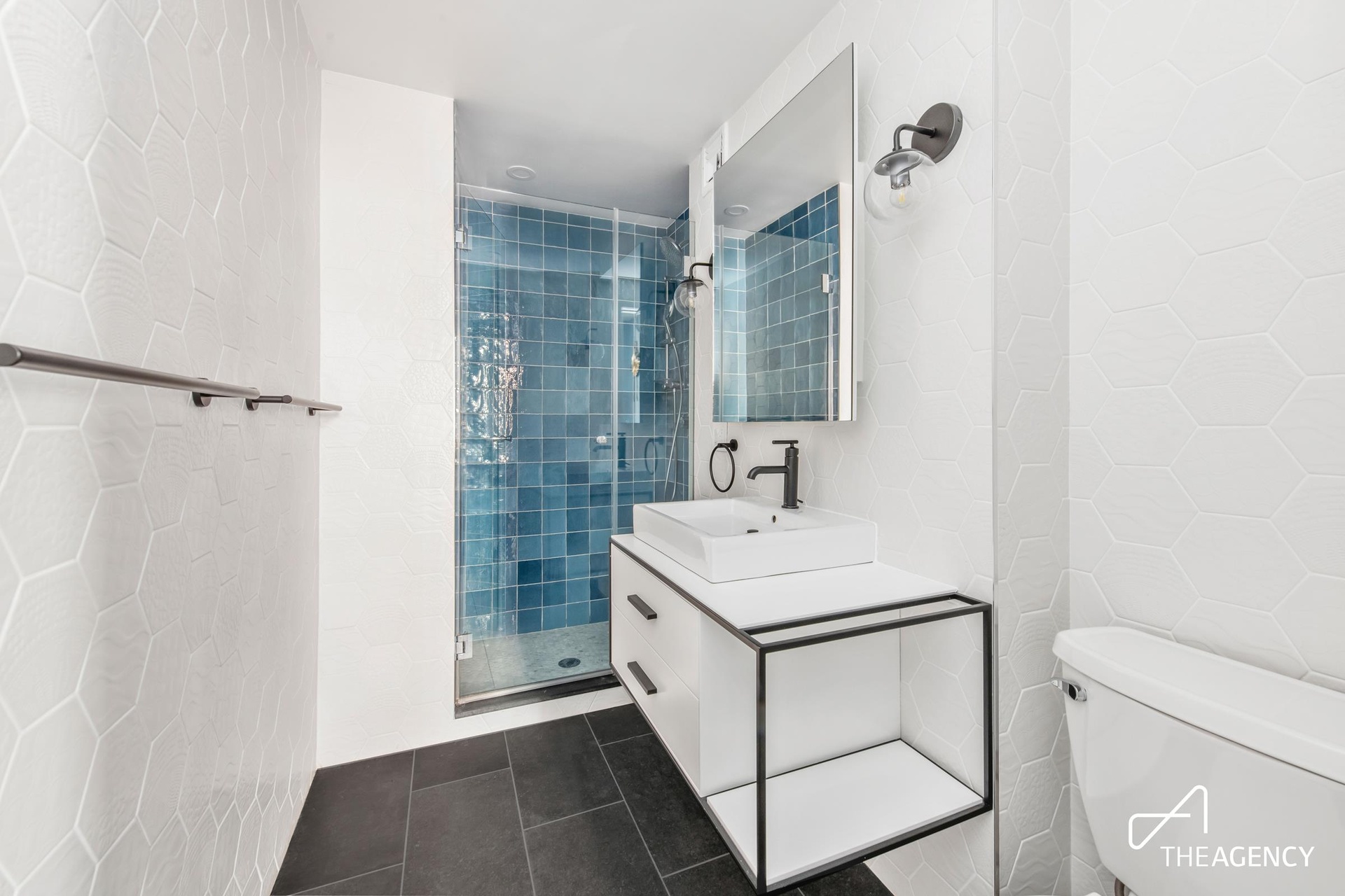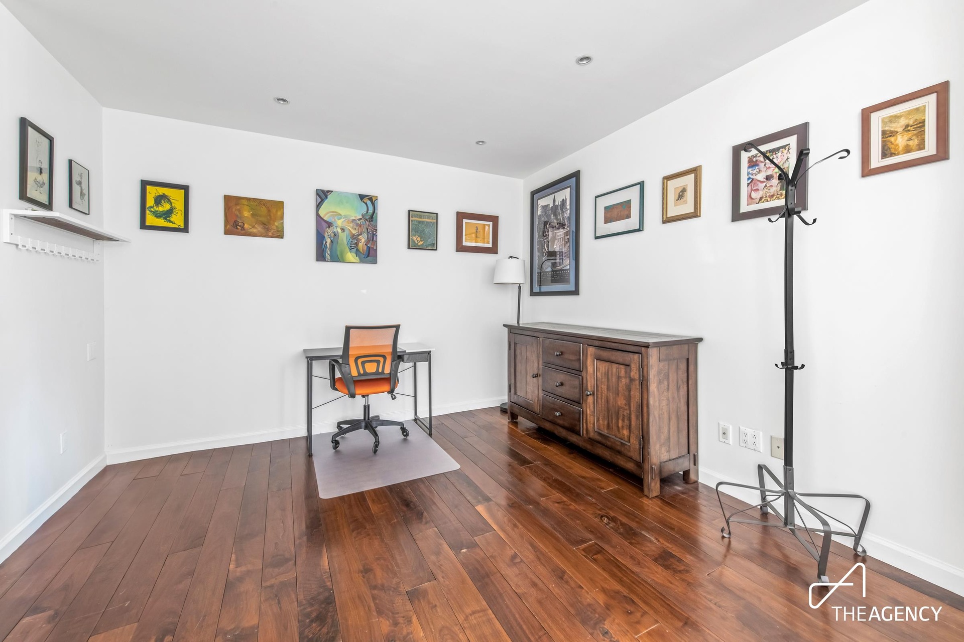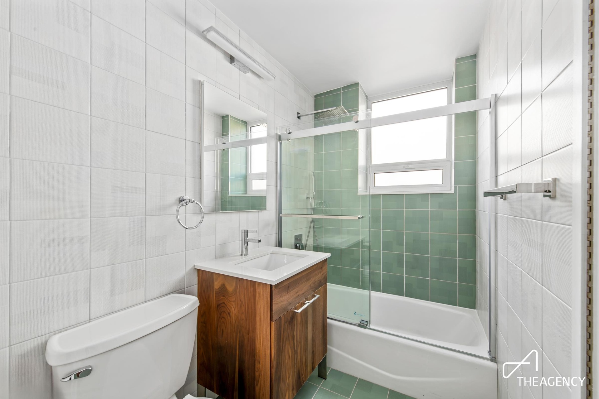 Welcome to this generously proportioned one bedroom, two bathroom home featuring the perfect blend of luxury, convenience, and versatility. Nestled on a quiet, tree-lined street mere moments from the vibrant heart of Columbus Circle and Billionaire’s Row, this home is an urban sanctuary in one of Manhattan's most desirable neighborhoods. Upon entering, you'll be greeted by a large foyer that seamlessly flows into the expansive living area, offering ample space for relaxation and entertainment. The flexible layout even provides an opportunity to create a den or home office, perfectly tailored to your needs. The renovated gourmet kitchen is a chef's delight, featuring a large peninsula that invites casual dining, high-end appliances, a dishwasher, and a wine fridge — ideal for hosting or enjoying a quiet night in. Modern conveniences continue with an in-unit washer and dryer, ensuring that laundry day is a breeze. A renovated full bathroom exists for the use of your guests.