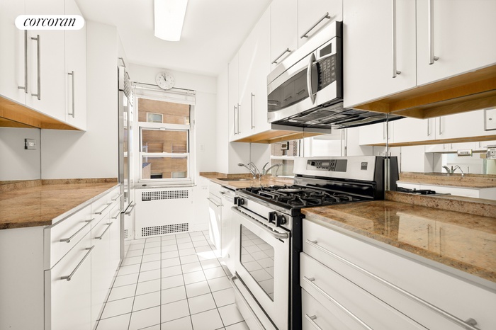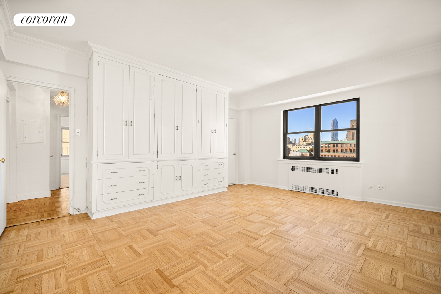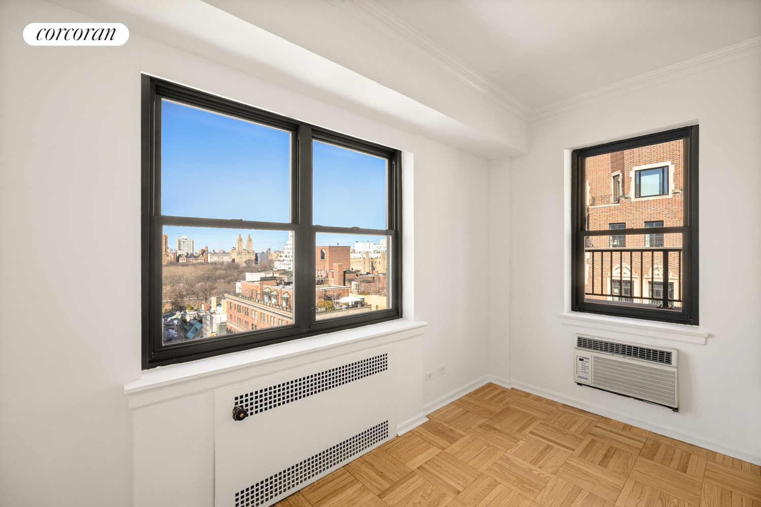 The corner primary bedroom is truly a sanctuary, with expansive Western and Northern exposures, serene park views and fantastic light throughout the day. A beautifully renovated en suite bath and 2 spacious walk-in closets further enhance the room's allure. A second king sized bedroom, also features park views, an ensuite bath and two large closets. The large, windowed kitchen, complete with a butler's pantry and complemented by an adjoining staff room also with a full bath, provides both comfort and convenience. Additionally the electrical service in this apartment has just been upgraded and a brand new washer and dryer have been installed! Other features include an abundance of closet space , through the wall air conditioning and a spacious storage locker.