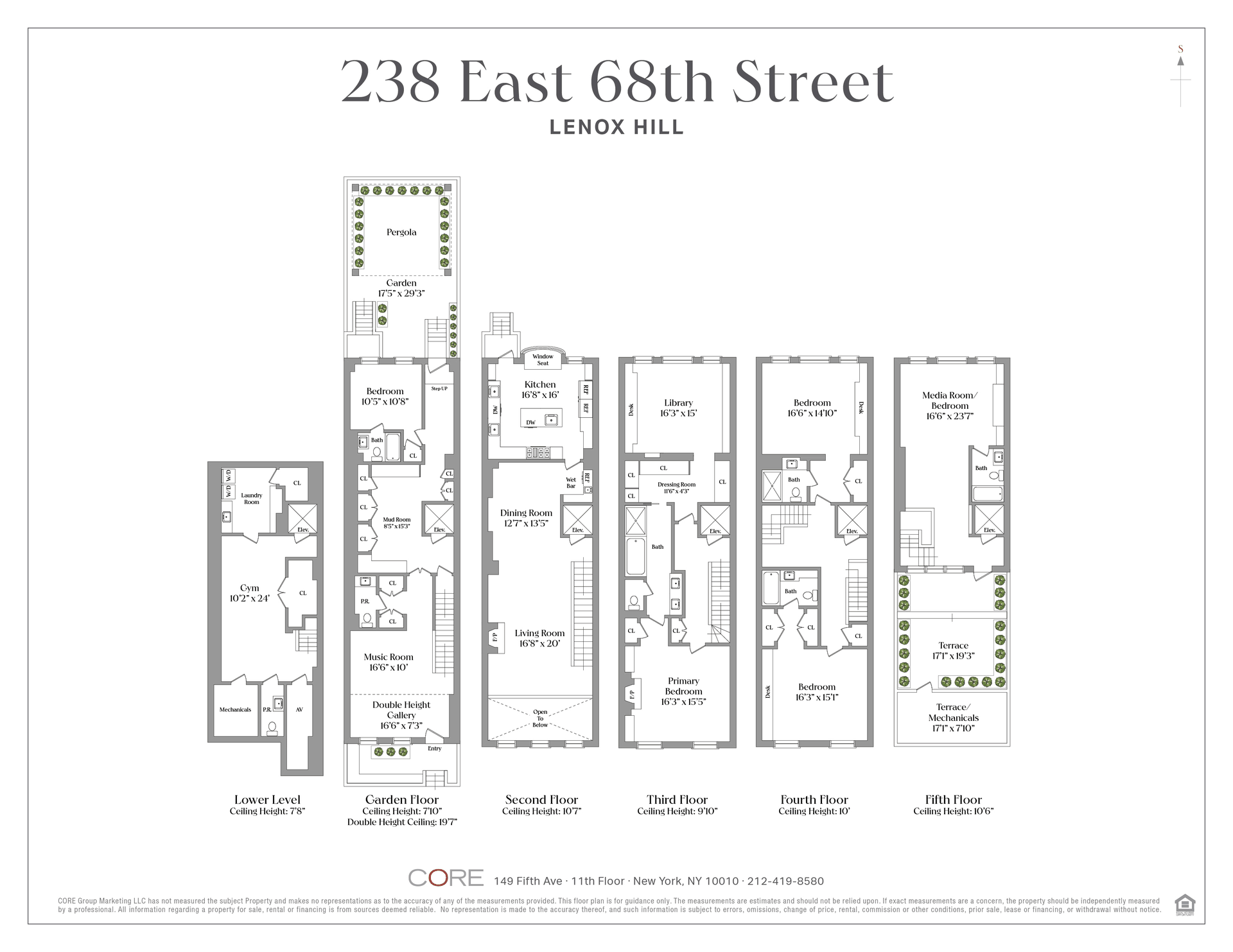 The third and fourth floors are the designated living quarters. The primary floor encompasses complete luxury and functionality allowing circular access from the primary bedroom, connected to the beautifully appointed bathroom, to the gracious dressing room, and lastly to the refined library. The fourth and fifth floors feature three oversized bedrooms with en-suite bathrooms and several closets. The fifth floor is the ultimate sanctuary for relaxing and entertaining, paired with a finished rooftop for seamless indoor/outdoor living.