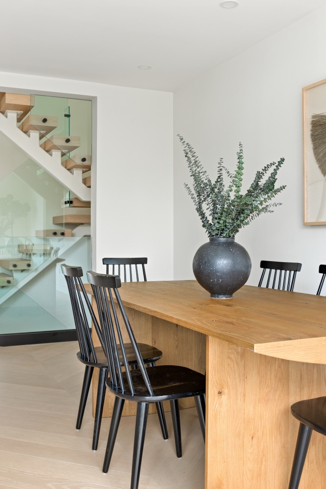 The top floor offers a bright and airy family room, a powder room, and a spacious terrace, perfect for unwinding while taking in the views.