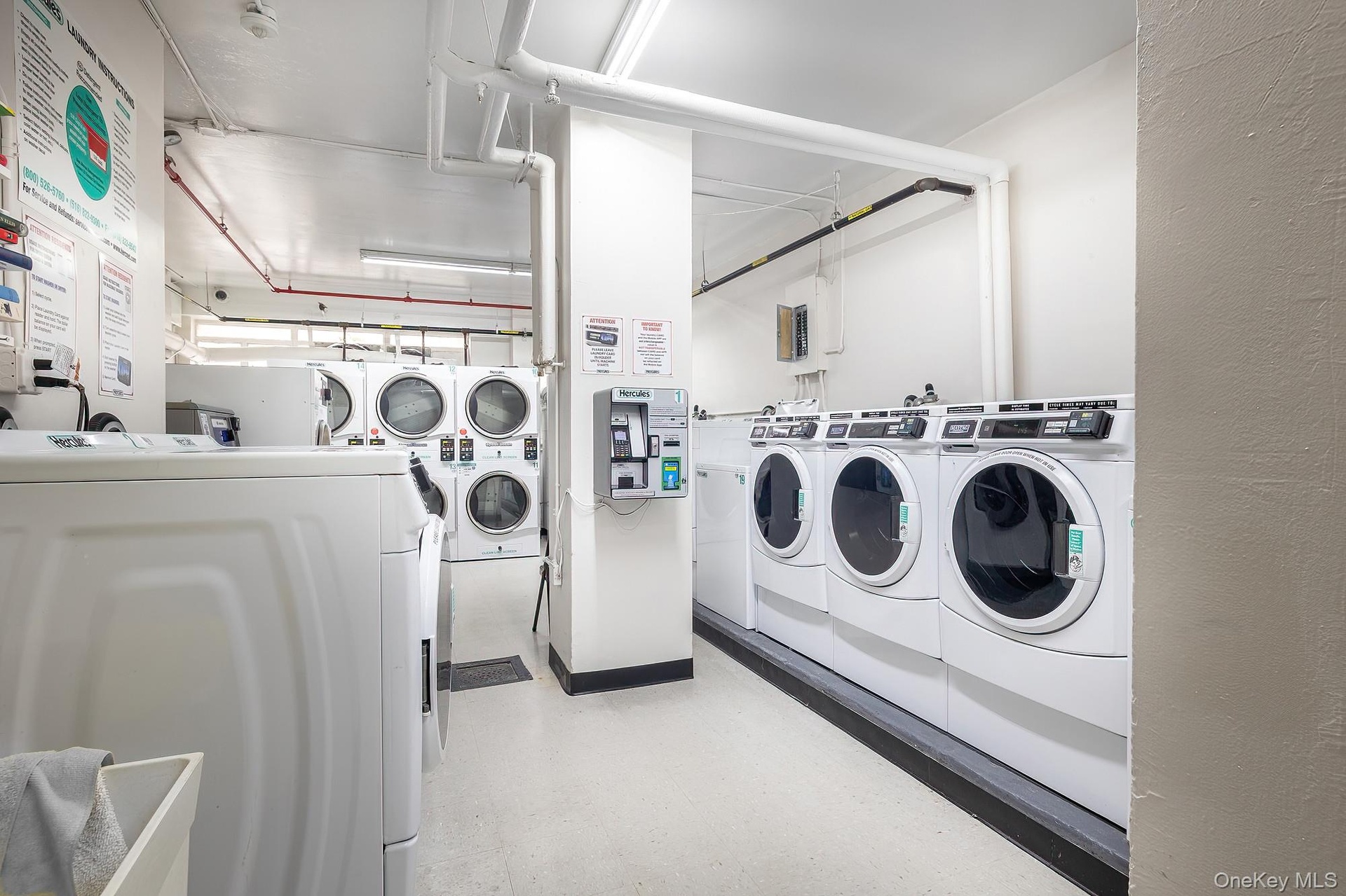 - Shared laundry area with tile patterned floors, washer and dryer, and stacked washer / drying machine