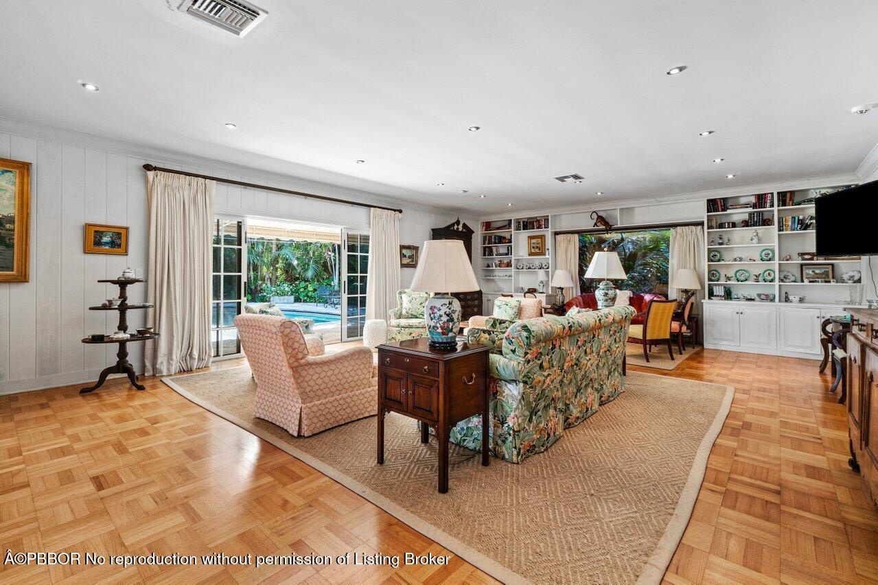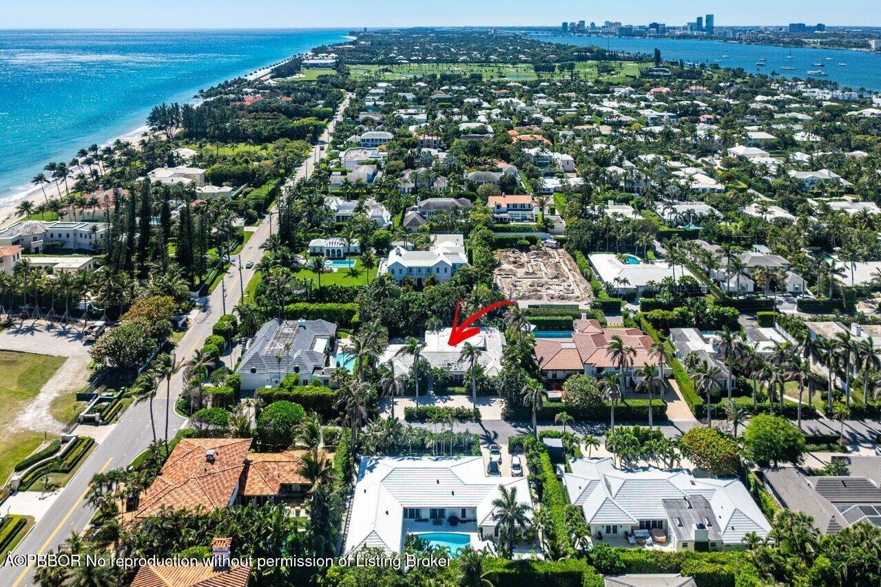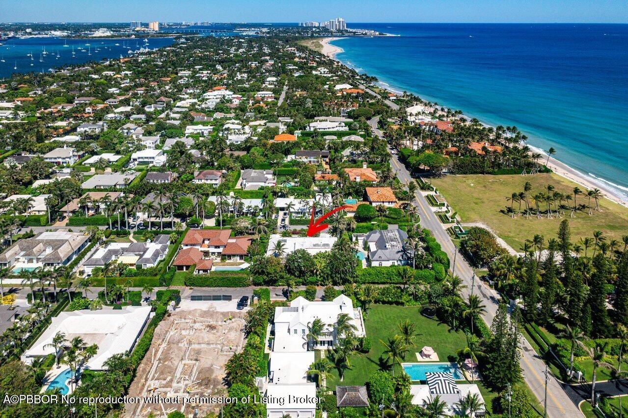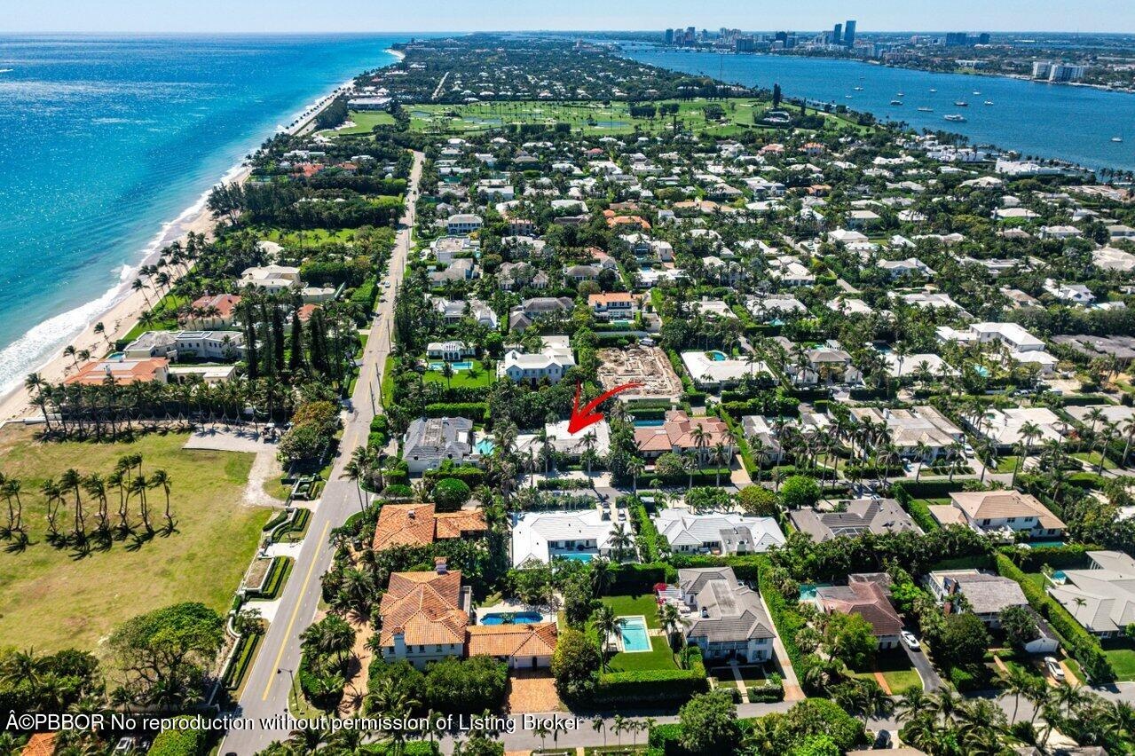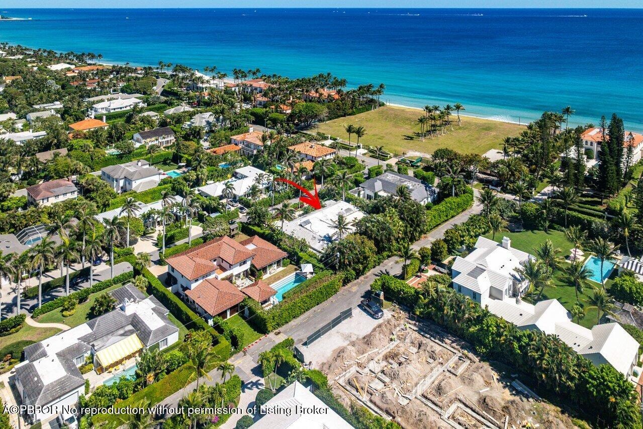 Prime location, Bermuda style home on a royal palm-lined street on the North End of Palm Beach with a large lot, with rear access from Via Marila, and just two houses from the beach. The property features a pool surrounded by tropical landscaping, an updated kitchen with marble countertops, formal dining room, and an open floor plan for entertaining with wet bar.