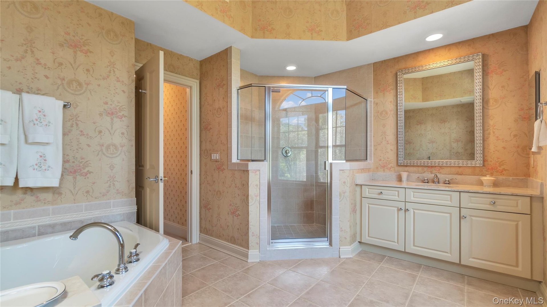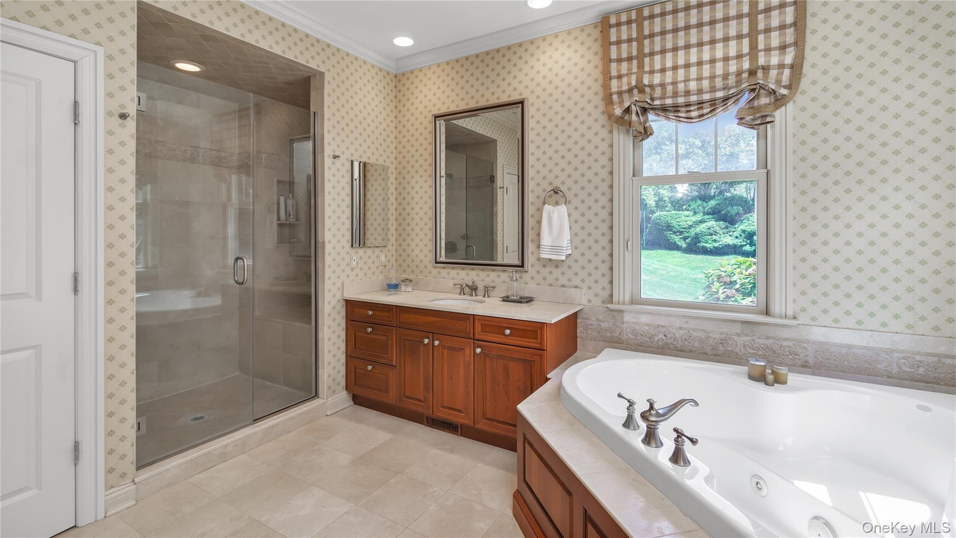 - Bathroom Featuring Large Shower & Jacuzzi Style Tub
