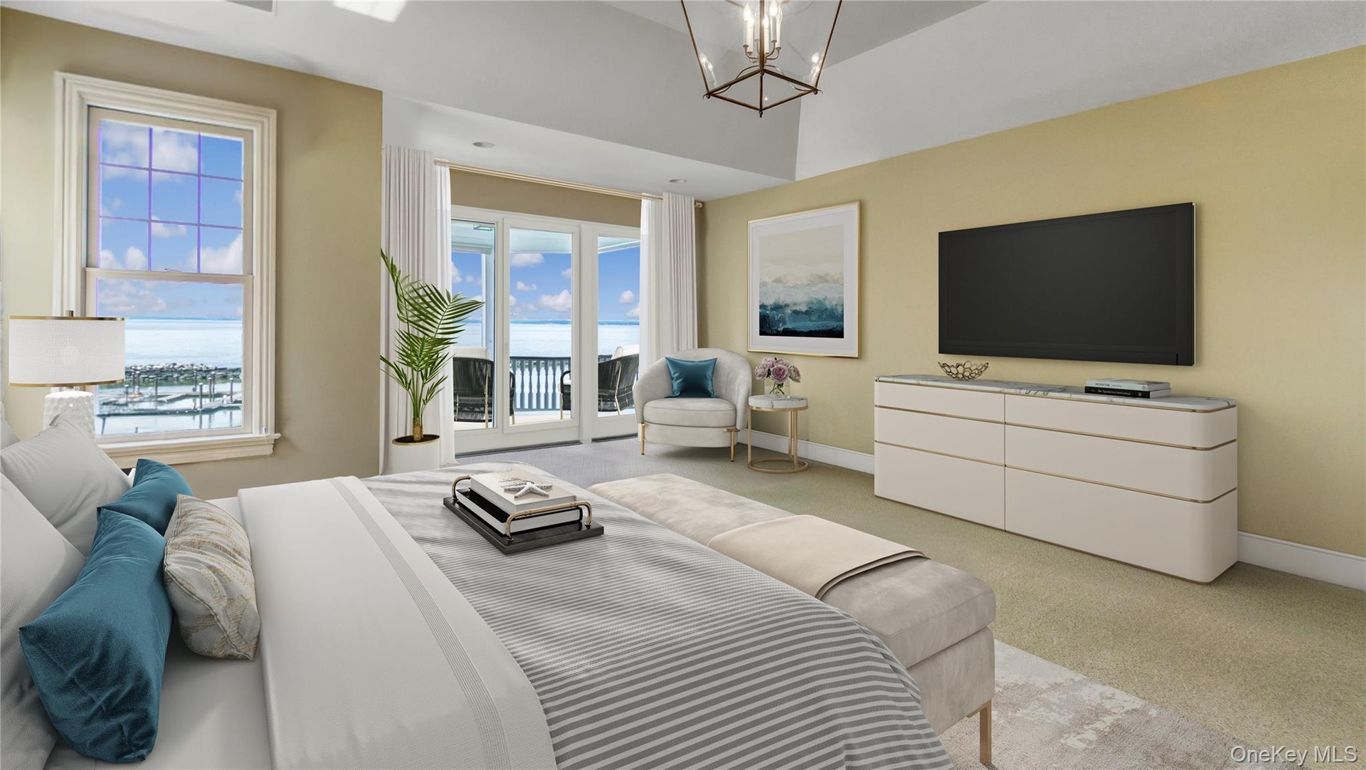 - Virtually Staged Primary Bedroom with Expansive Windows bringing in Views of the LI Sound and Beautiful Sunsets.