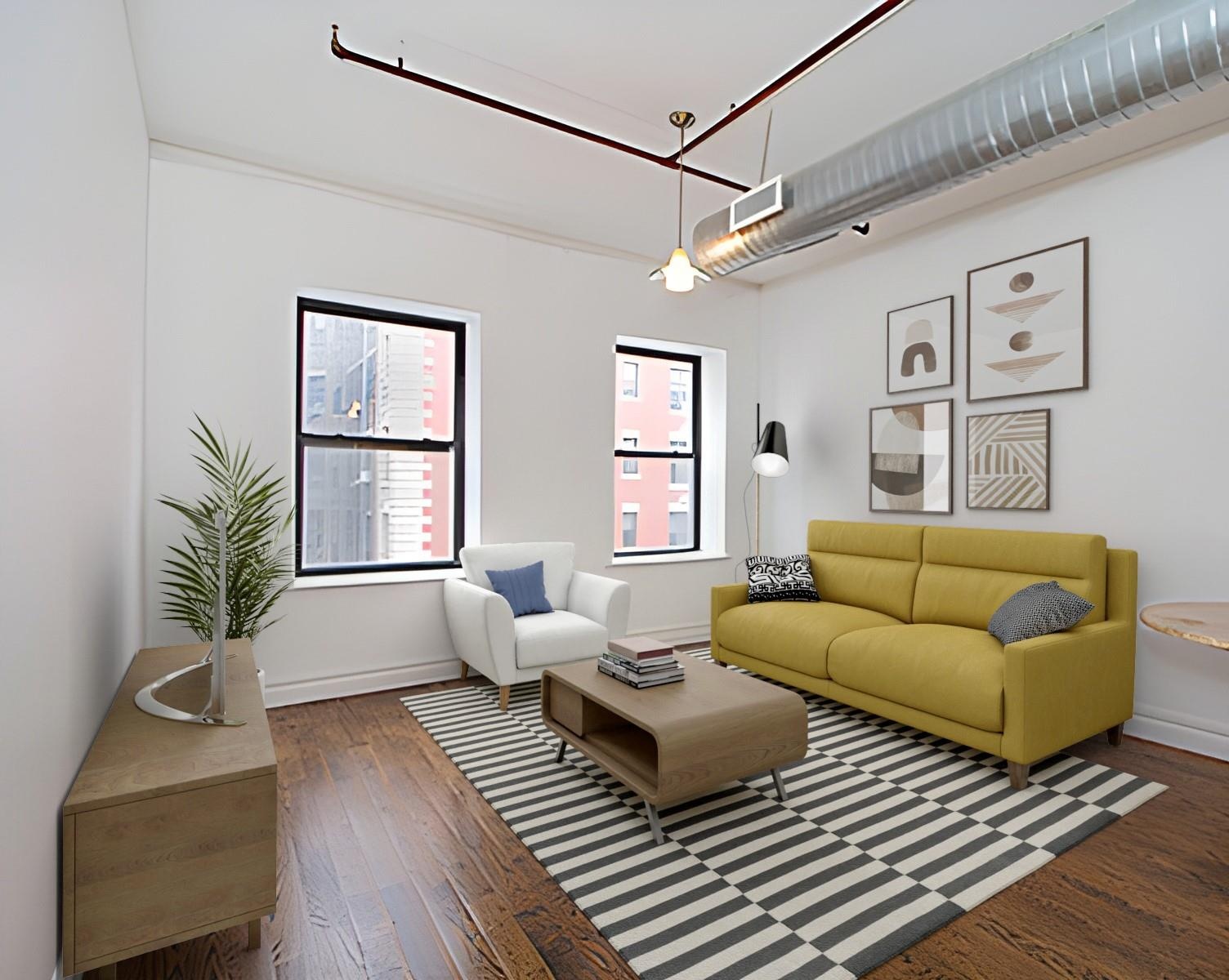 Wide-plank hardwood floors are throughout the building, as well as extra-large double-pane windows, modern finishes, and central heating and air conditioning.