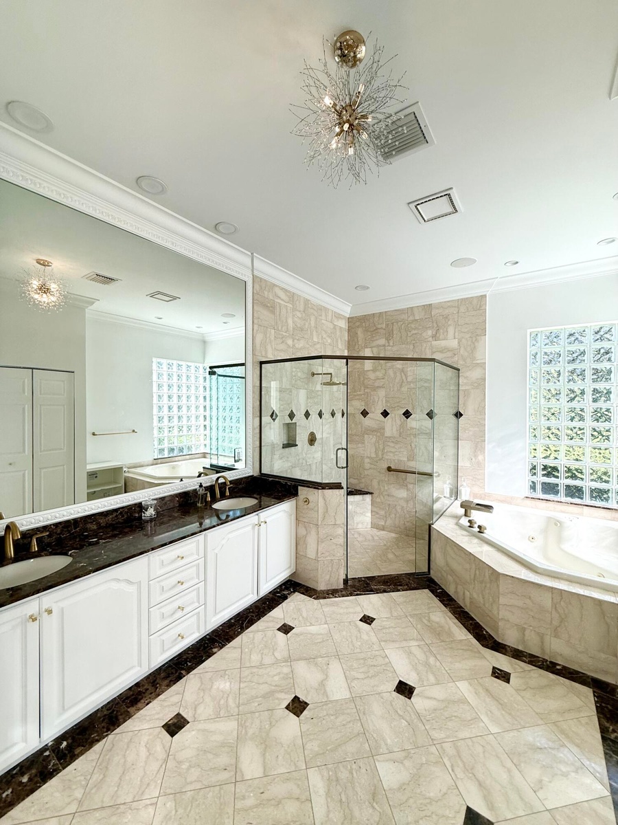 DescriptionDOUBLE LOT! Rarely offered Admirals Cove home on 1/2 acre, lushly landscaped PRIVATE location.Huge resort style pool/spa w/southern exposure. Summer kitchen. Expansive garden areas. Newly upgraded home boasts 4 large bedrooms ensuite, large loft, balcony and including 1 bedroom guest house w/full bath. Open great room floorplan w/volume ceiling. New blonde wood floors thruout. Open kitchen w/stainless steel appliances, wood cabinetry, quartz countertops, pantry. Breakfast area. New ACs, New pool heater. Contemporary glass front door leads to large screened enclosed furnished patio. New wrap around bar w/ lighted quartz countertop. Designer deco custom lighting. First floor primary suite wing w/2 large walk in custom closets, office, sitting area, dressing area. Quick Closing Available