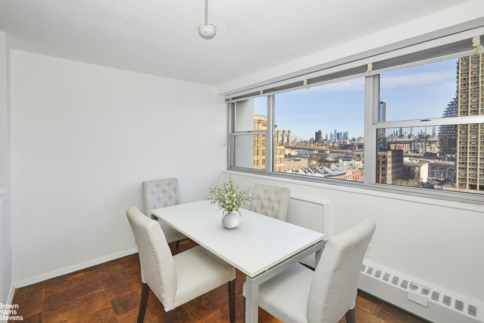 This charming alcove studio in Brooklyn Heights offers a unique blend of comfort and breathtaking views.