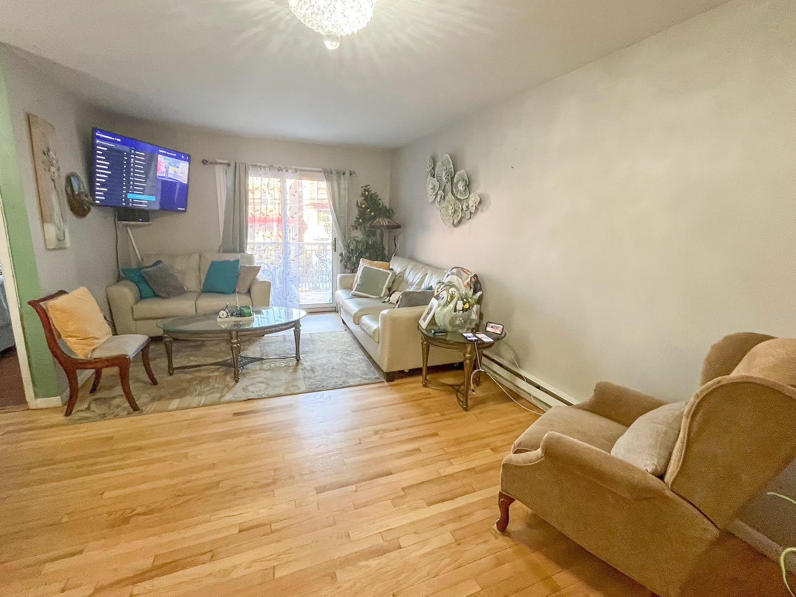 - Bedroom with access to exterior, baseboards, and light wood-type flooring