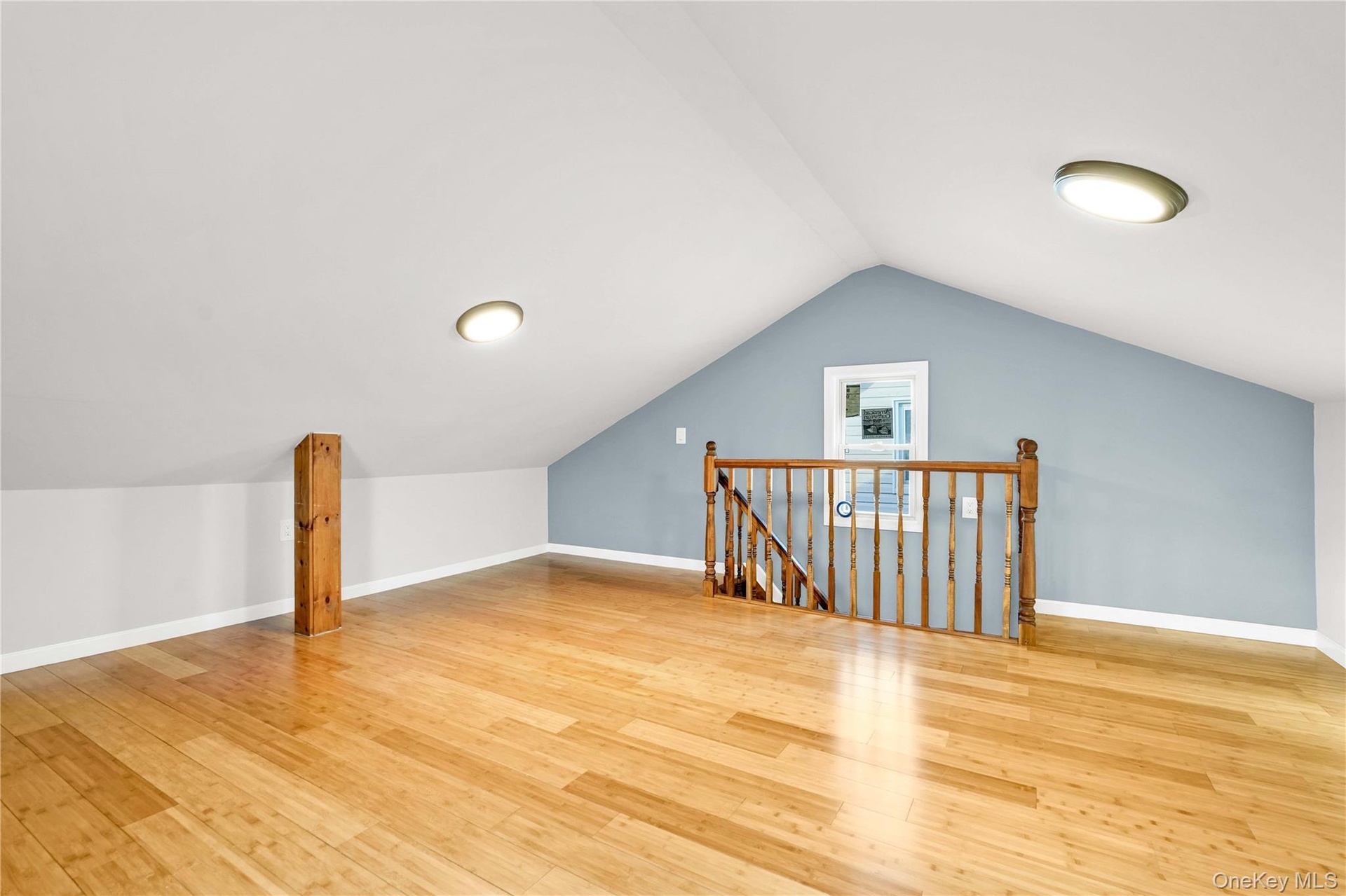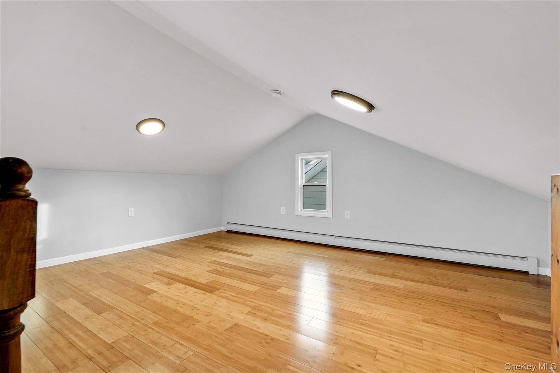 - Bonus room featuring a baseboard heating unit, light wood finished floors, and vaulted ceiling