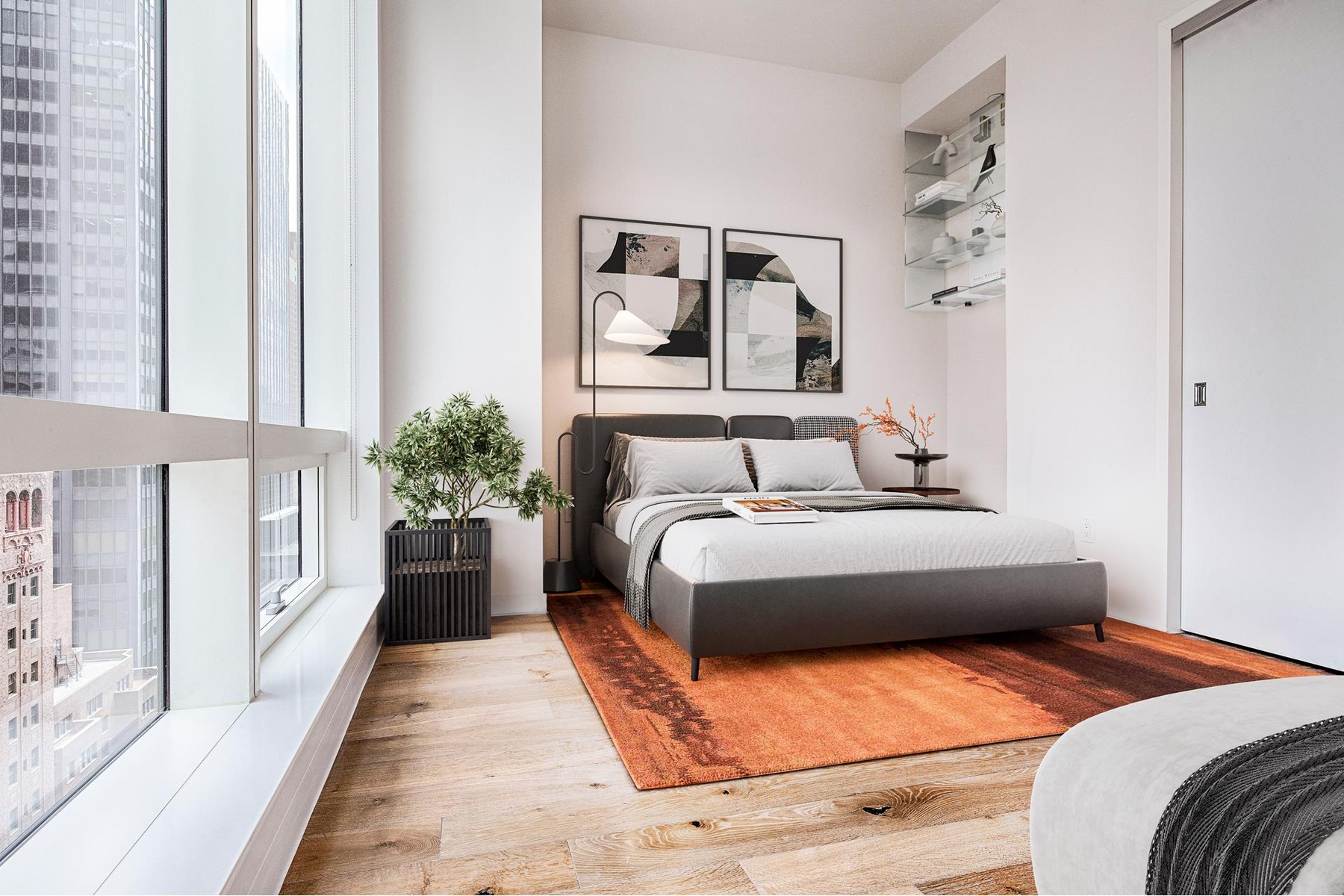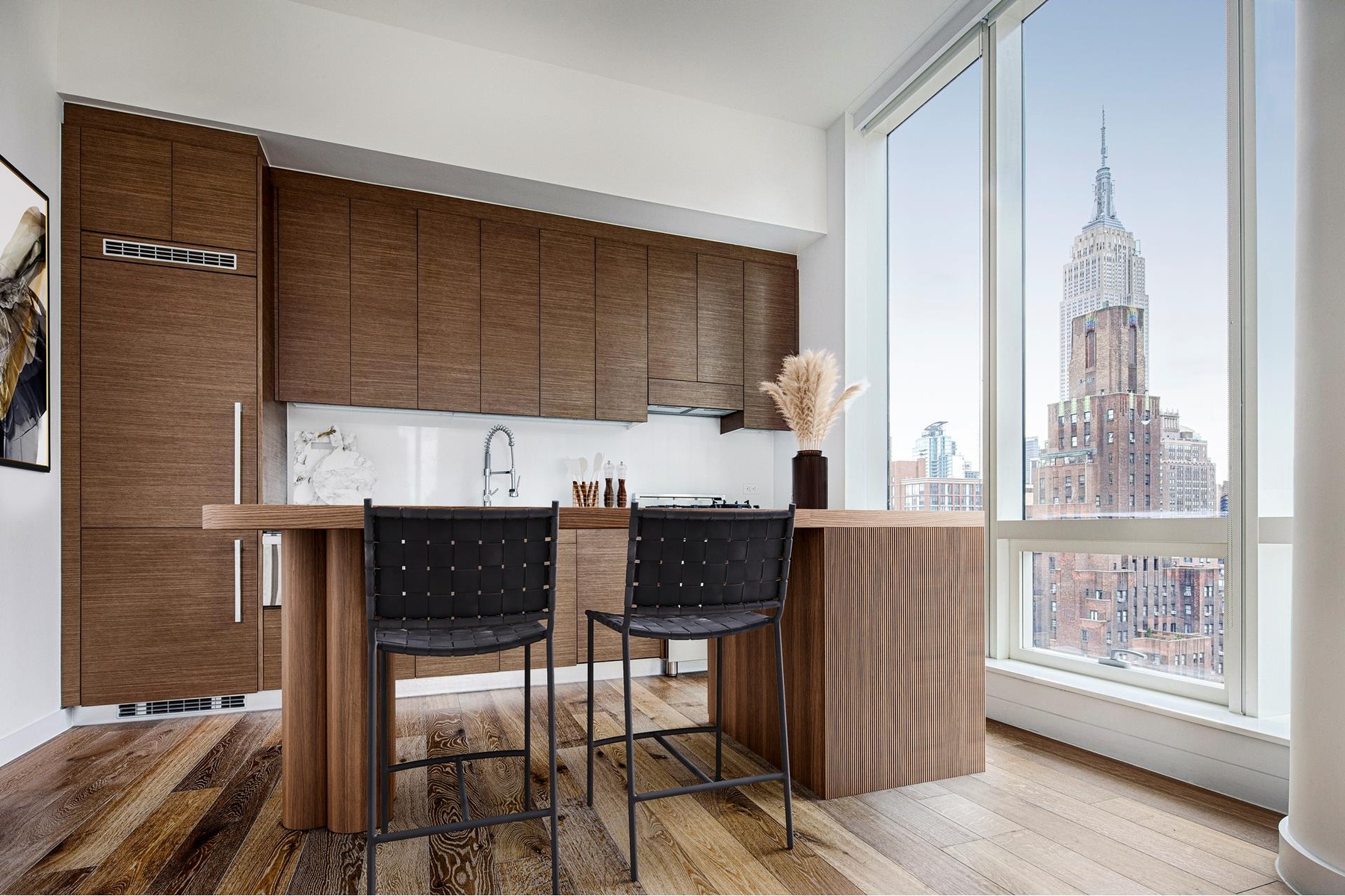 Make this pristine corner unit with mesmerizing, sweeping city views your new home or prime investment opportunity! This gorgeous, sleek, ultra-modern high floor unit features wide plank walnut floors, an open kitchen with spacious living room and panoramic views of NYC!