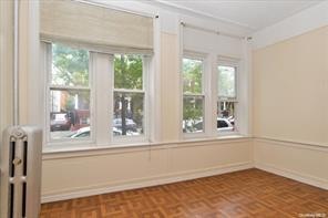 - Unfurnished room featuring plenty of natural light, radiator, and a decorative wall