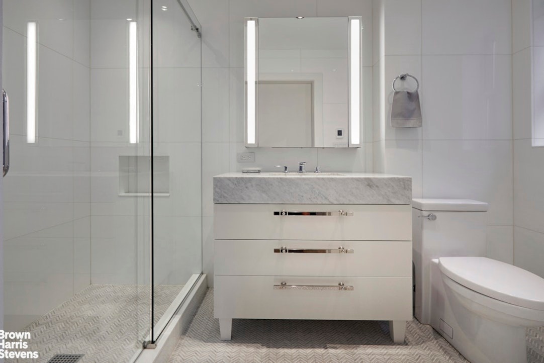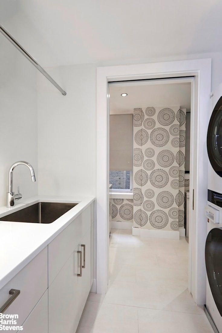 This impressive home is wrapped throughout - in luxury custom lighting and exclusive wallcoverings. The apartment features wide plank white ash Carlisle hardwood Oak floors, four zone central air conditioning, original stripped zinc metal doors, plentiful closets and storage, electric shades and CAT-6 wiring throughout. A large storage bin transfers with the sale of this apartment.