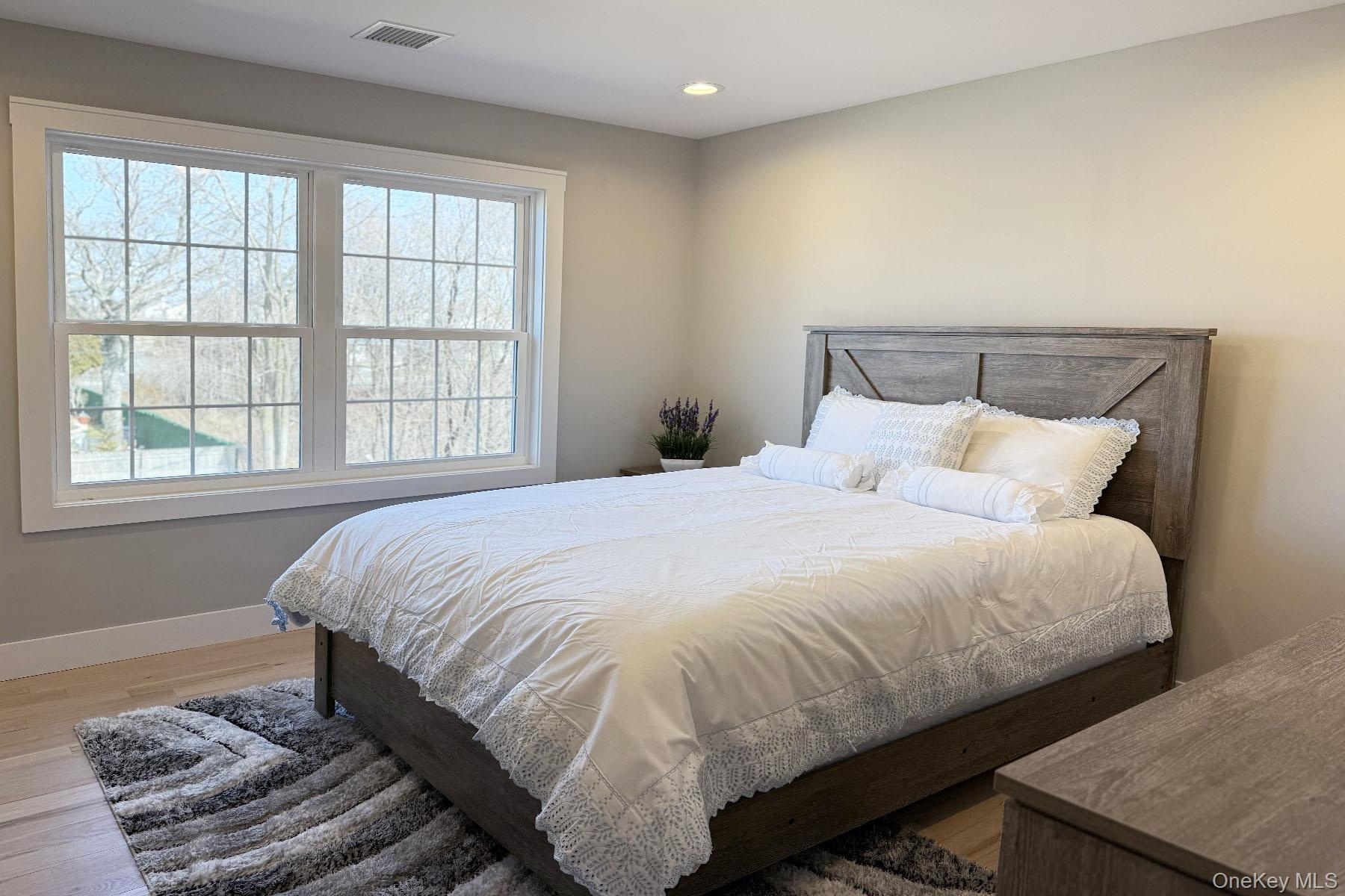 - Bedroom with recessed lighting, visible vents, baseboards, and wood finished floors