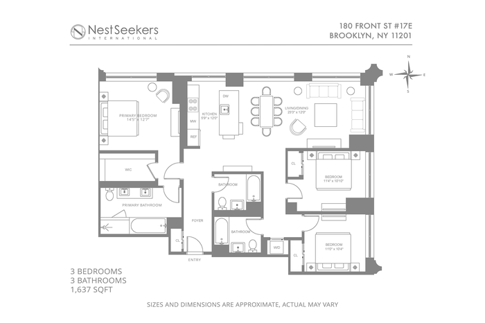 Situated on a high floor in the heart of DUMBO, this stunning residence offers an expansive, light-filled layout with breathtaking skyline views. Thoughtfully designed for both comfort and style, the spacious living and dining areas flow seamlessly, creating an inviting atmosphere for relaxing or entertaining. The chef’s kitchen is outfitted with top-of-the-line appliances, custom cabinetry, and a generous island.