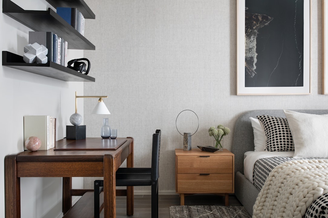 Vandewater's interior design speaks to an old school design approach and showcases the beauty of the materials in a new and thoughtful way - oversized, high performance casement windows, tall ceilings, and European white oak floors. Elegant kitchens offer honed Perla Venata kitchen counters, chef caliber Miele appliances and custom, craftsman inspired oak cabinetry with pewter hardware. Primary bathrooms are outfitted with honed Windsor Cream marble, soaking tub, large shower with frameless glass enclosure, pewter fixtures, and custom oak and travertine vanities. All homes have the latest hvac technology from Climatemaster, laundry equipment from Whirlpool or GE, and recessed LED lighting. All residences have remarkable light, garden views and dramatic city vistas from the top third of the building. Preserved views in every direction allow for virtually no obstructions past the 20th floor, providing views of the George Washington Bridge, Hudson River, Central Park, downtown Manhattan and beyond. Select residences have outdoor terraces.