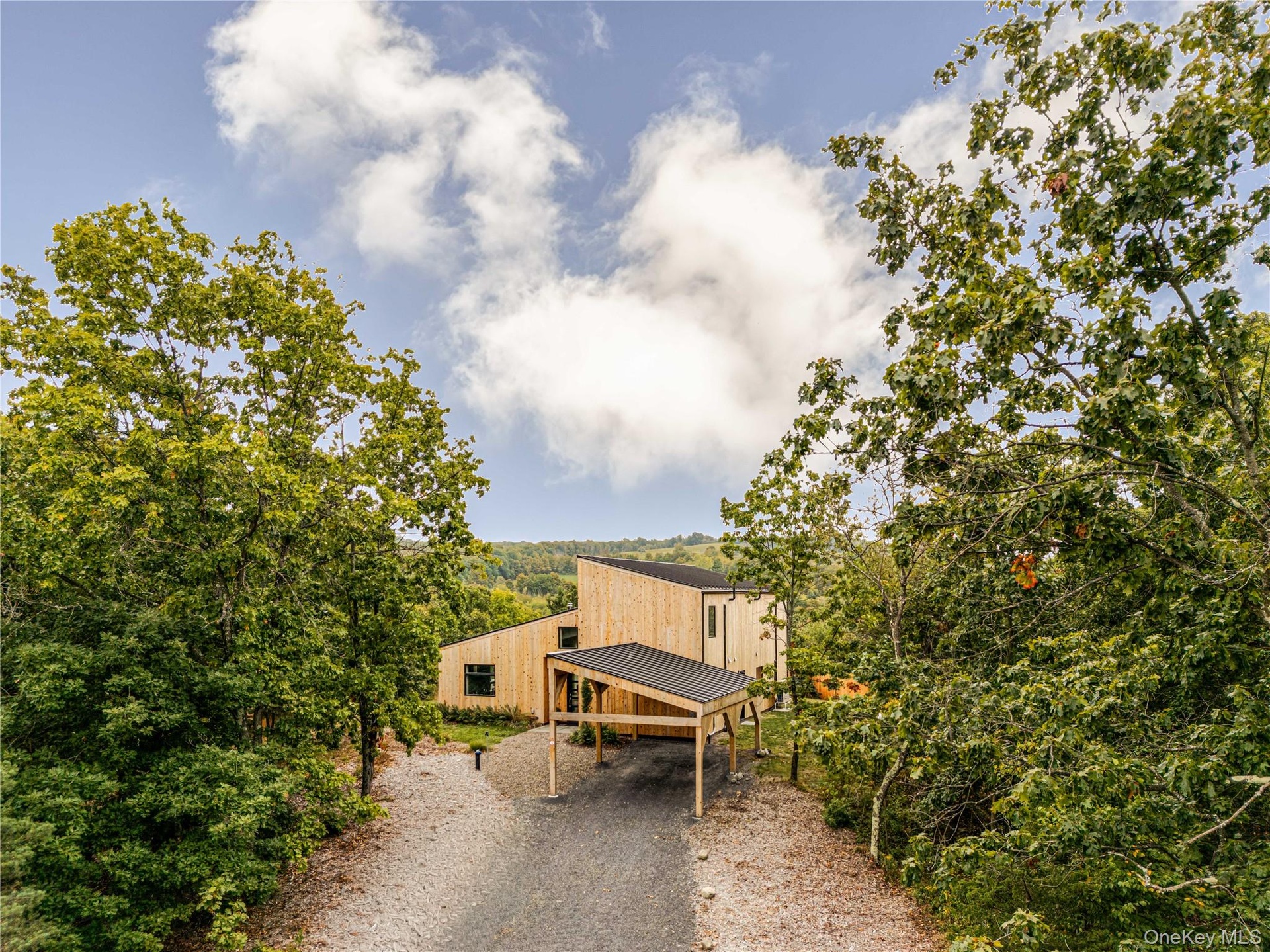 Scandinavian-inspired living in upstate New York! Welcome to Hopwood House, a naturalist contemporary new build offering sustainable living in Dutchess County. Designed to harmonize with its scenic surroundings, this home showcases exceptional craftsmanship with high-end building materials including cedar siding, a durable metal standing-seam roof, and natural stone accents. The house is energy-efficient with a passive solar design, mini-split heating and cooling, and a well-insulated envelope.