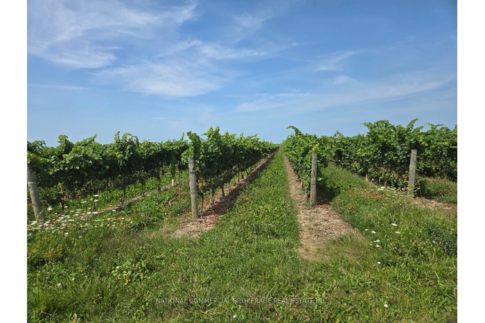 Fantastic and very unique Vineyard 40.091 acres in Niagara -On-The-Lake situated within Four Mile Creek and Niagara On The Lake. South of the airport.This Vineyard is very well irrigated.Irrigation installed in 2018.Close to Hwy.55 and QEW.The soil consists: red shale, rich silt and clay composition.The Vineyard has 5 varieties: Riesling (5.22 acres), Merlot(8.13 acres), Pinot Gris(8.69 acres),Muscat Ottonel (2.62 acres),Marquette(12.9 acres)