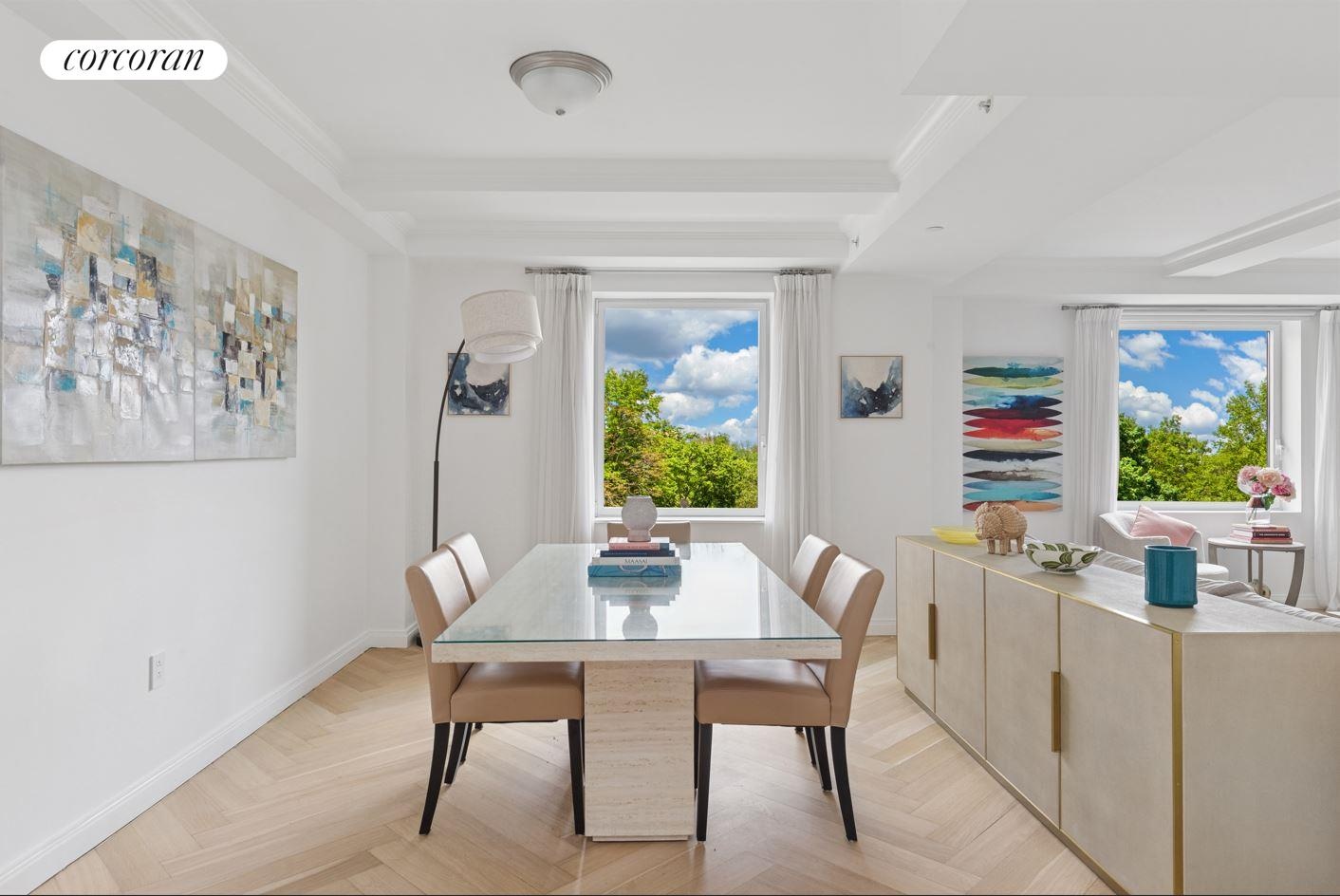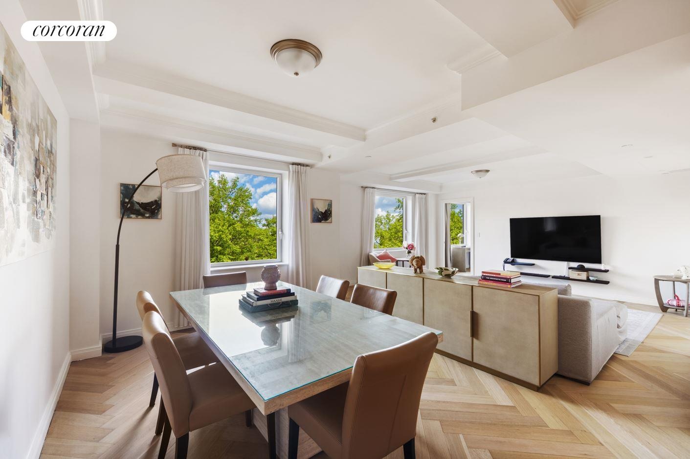 This residence is flooded with tree top views and boasts huge picture windows, three bedrooms, three full bathrooms and is truly one-of-a-kind. New white oak herringbone floors with a natural Scandinavian finish accent this condominium's many luxurious finishes including nine foot beamed ceilings, a new huge storage room, an eat-in kitchen with a large pantry and suite of stainless steel appliances, and two additional guest closets. You will be immediately drawn to the tree top vistas of Central Park from the oversized city quiet picture windows.