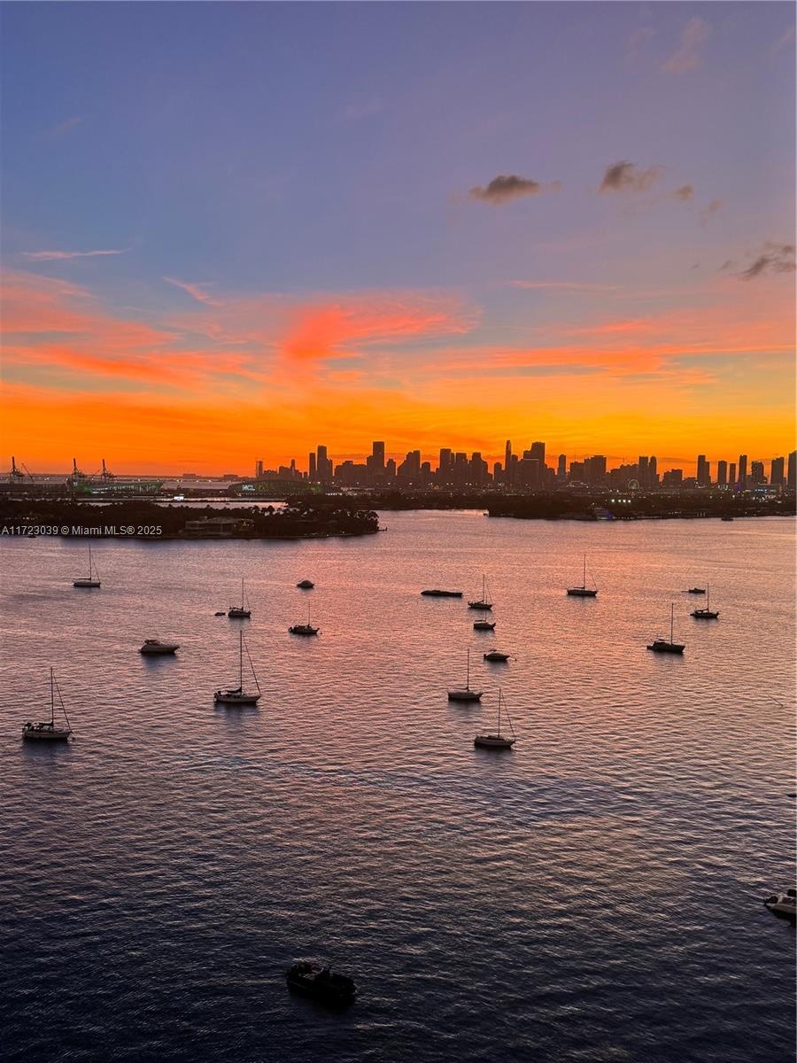 Unwind from your long days on your private balcony watching Sunsets so unreal they look AI Generated. This 2/2 split floor plan boasts stunning views of the ocean and Biscayne Bay. It's Southern exposure bathes the apartment in warm natural light. Features include Foyer Entry, Open Kitchen, Dining Area, Washer/Dryer. Feel like you're on an eternal vacation in this Resort Style Waterfront Complex enjoying Bayfront Pool, Huge Gym, Spa, Volleyball, Tennis, Putting Green, with 2 Outdoor Kitchens & KOI Garden, Party Room & Business Center, Electric Vehicle Charging, Concierge & Security. Cable & Internet Included.