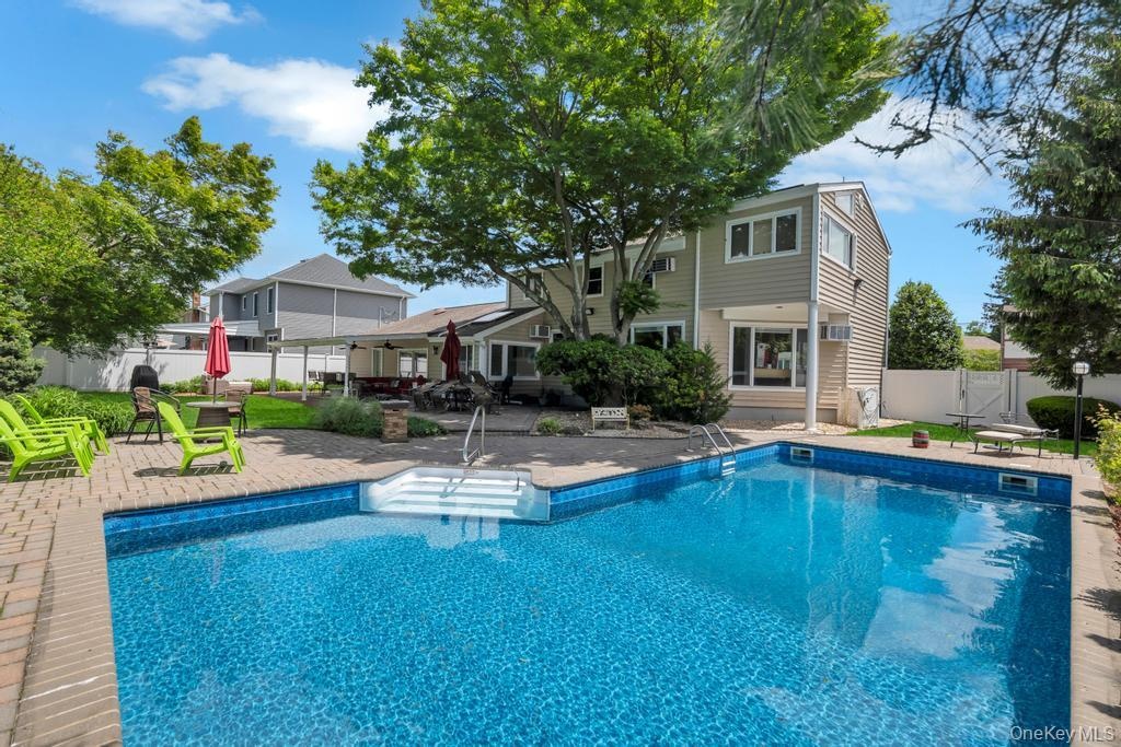 Step outside into your private entertaining haven! A large, partially covered paver patio sets the stage for outdoor dining and relaxation, all while enjoying the calming yard view. The spacious in-ground pool, with an updated liner just four years old, is perfect for summer enjoyment.