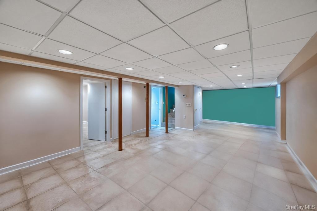 - Finished basement featuring recessed lighting, baseboards, and a drop ceiling