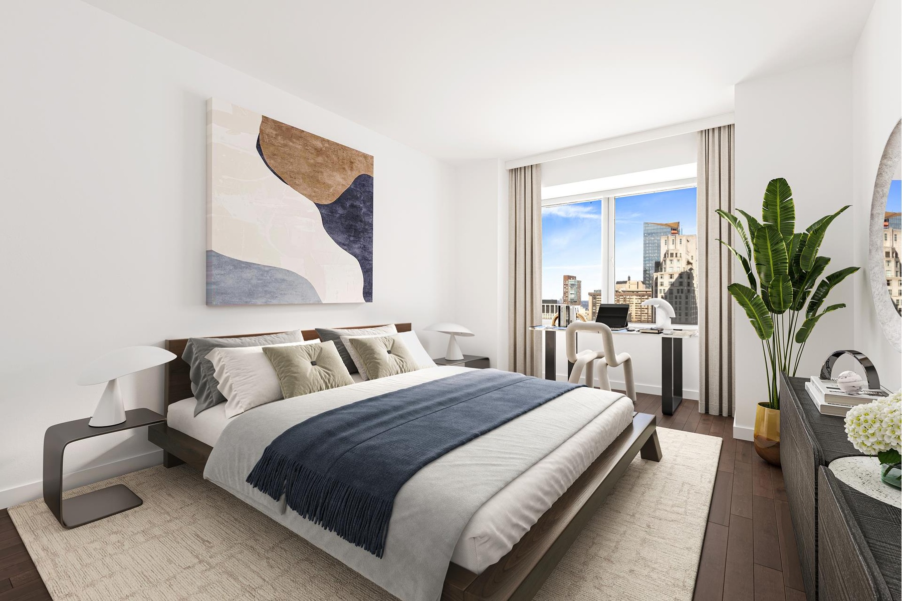 Located high above Columbus Circle, enjoy priceless, unobstructed views of Central Park and the Manhattan skyline from the floor to ceiling Bay Windows.