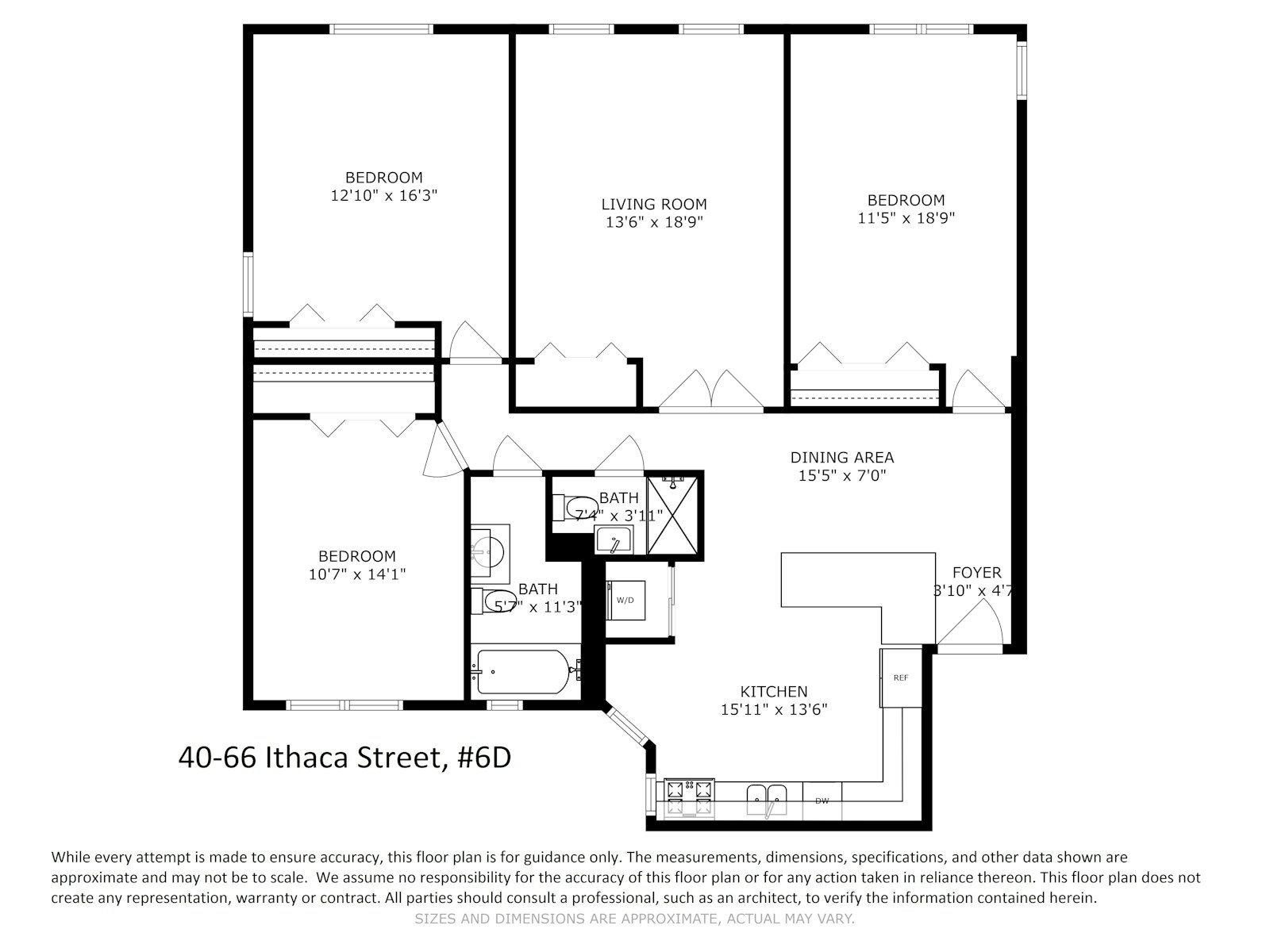 Looking for an enormous 3BR with amazing light and space? Look no further than unit 6D at 40-66 Ithaca Street. This oversized 3-BR/2-BA top floor corner unit boasts all four exposures and is currently configured as a 4-bedroom apartment. However, as the floor plan and virtually staged photos show, one of the bedrooms could easily be turned back into the living room, allowing for a grand and sizeable 3-bedroom home. The bones of this unit are gorgeous! The light, the layout, and the spaciousness of the apartment cannot be beat. Each of the bedrooms are some of the largest bedrooms you will find. The expansive open kitchen with a window has been renovated and includes granite countertops, stainless steel appliances, and dishwasher. Both bathrooms have been updated and renovated; storage is generous; and there's even a coveted in-unit washer/dryer. HOA fees include property tax, water & heating. Also, subletting is permitted.