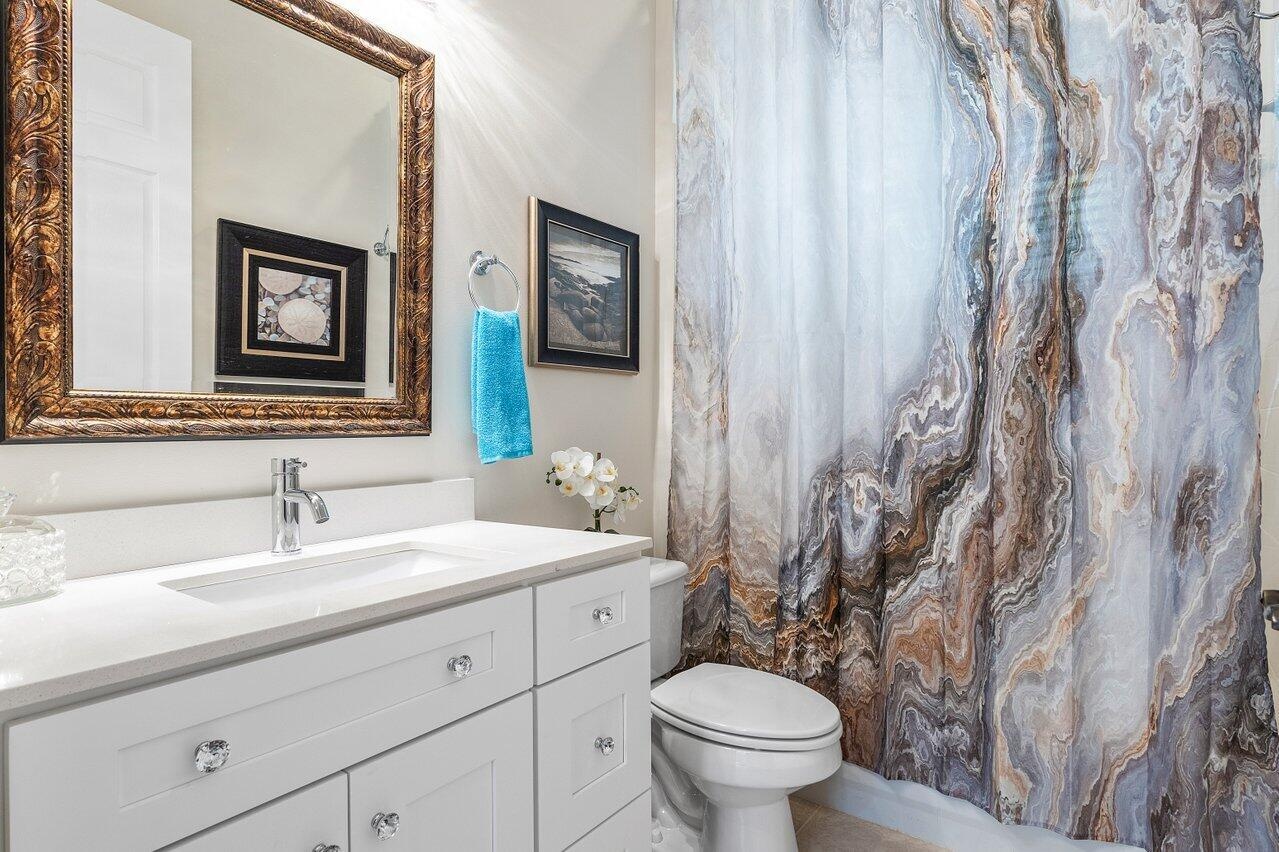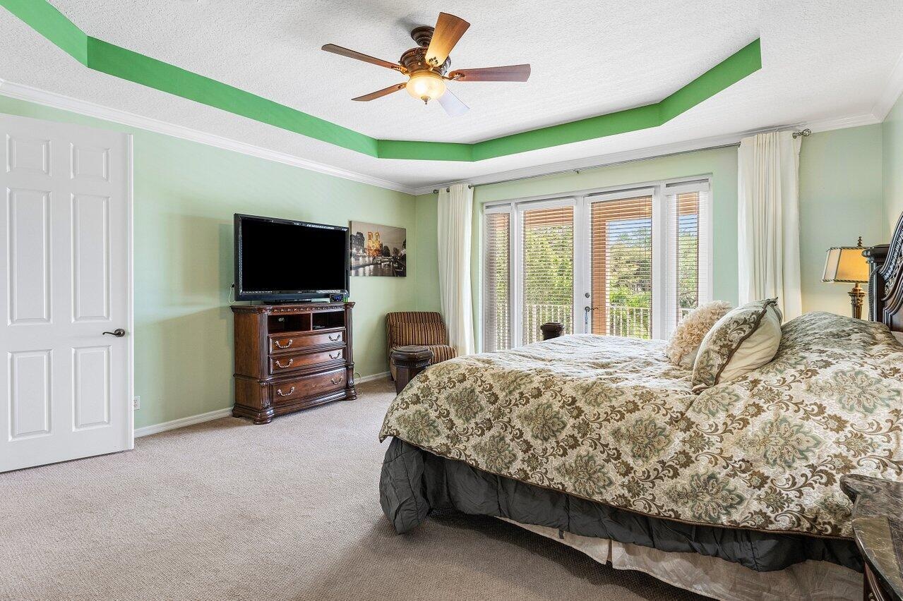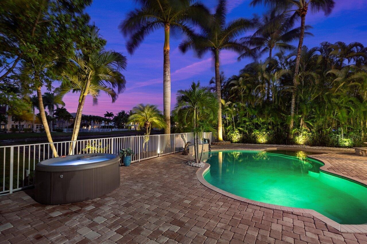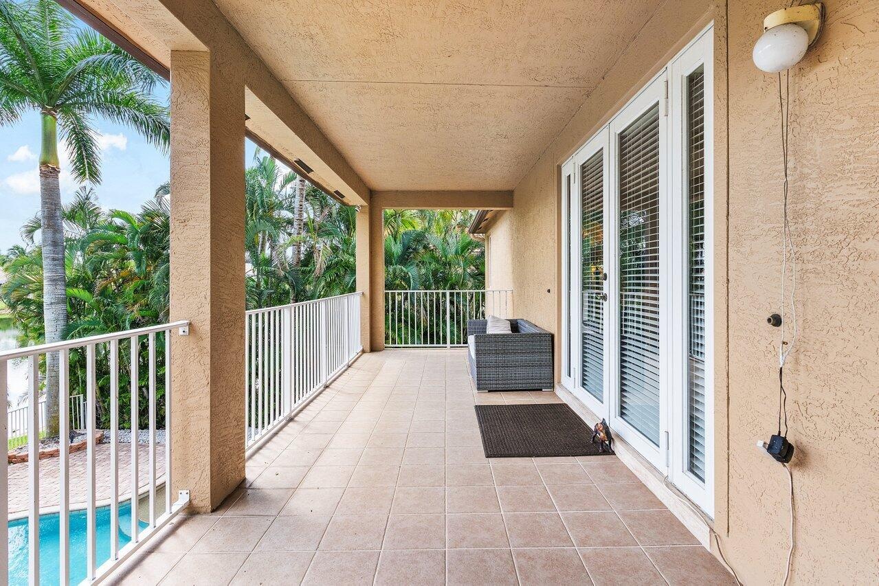 Welcome to the stunning Isolabella Estates! This gorgeous waterfront property is on a peaceful cul-de-sac. Inside, the home features elegant neutral earth tones throughout, freshly painted and has been immaculately maintained. This spacious home offers 5 bedrooms, 3.5 bathrooms and a 3 car garage (1 bedroom and 1.5 bathrooms are located on the 1st floor). The bathrooms have all been beautifully updated while the expansive primary suite boasts separate his and hers closets, a coffee bar, and a luxurious en suite with a soaking tub, large shower, double vanities, and a private balcony to enjoy morning sunrises or evening sunsets. Step outside to your own fully fenced and beautifully landscaped private oasis, complete with a