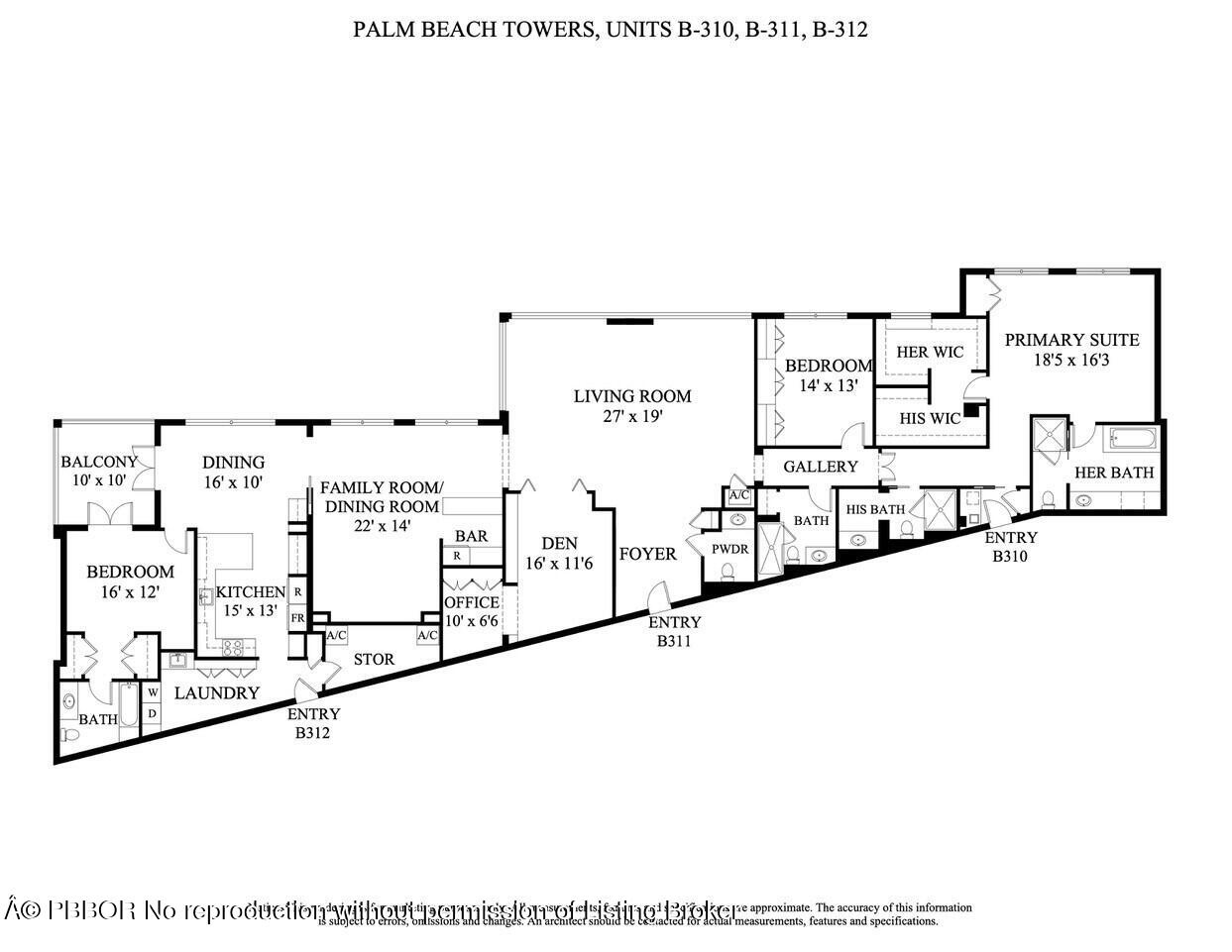One-of-a-kind. Breathtaking Triple Apartment lives like a home at 3600+ sq. ft. 3 Ensuite Bedrooms, Primary Bedroom with Separate His/Her Bathrooms, 4 1⁄2 Total Baths, plus Den and Dedicated Office Space, Separate Family Room (can be Formal Dining Room), Fabulous Chef's Kitchen, Spacious Laundry Room, Open Balcony with Magnificent Views of the Intracoastal. Three Parking Spaces Included in Price. Palm Beach Towers is a Premier Full-Service In-town Property Located just Steps from the Fabulous Restaurants and Shops at THE ROYAL. Amenities include on-site Hair Salon (Woody's) and Restaurant (Salute) with Room Service, Putting Green, Hot Tub, Gym, Exercise Studio and So Much More.
