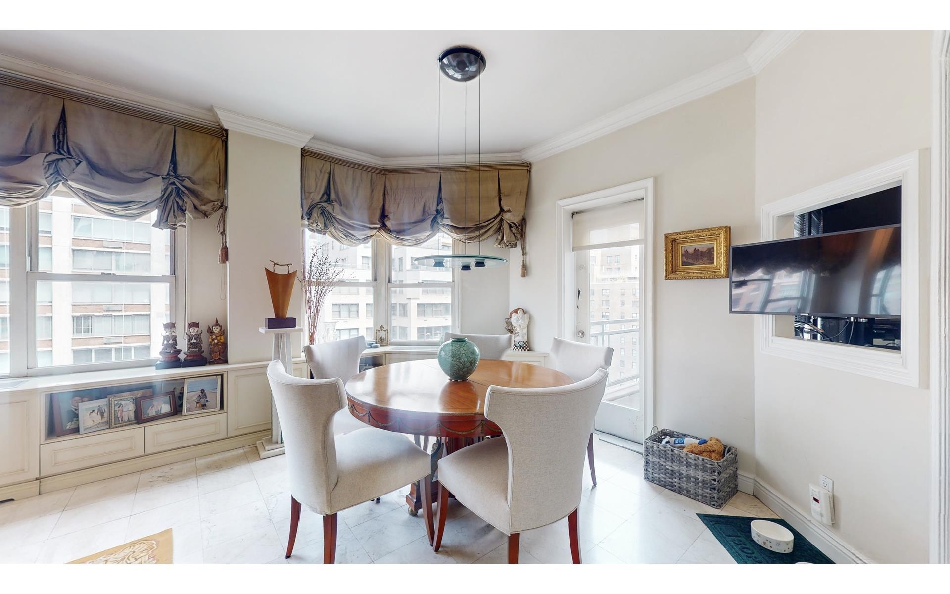 Price reduced on beautiful seamless combination apartment at reputable 360 East 72nd Street! This elegant three bedroom home with 2 1/2 baths and high ceilings opens to a sprawling oversized foyer with beautiful marble flooring that leads into a grand living room and a spacious corner windowed dining area. The entire apartment enjoys an abundance of light from the wall of north facing windows. Since the apartment is on the top floor of the wing, the adjacent sun-drenched balcony is oversized and has open skies above.