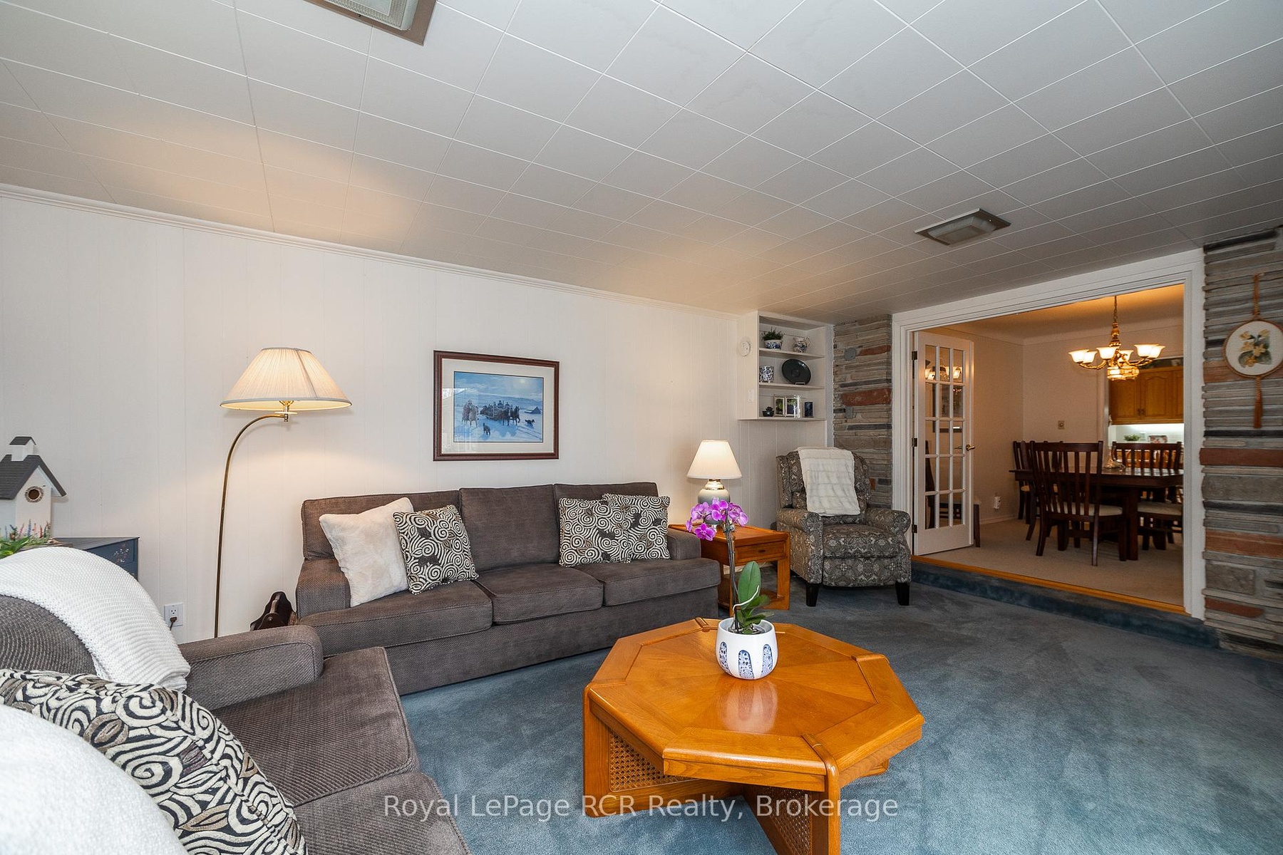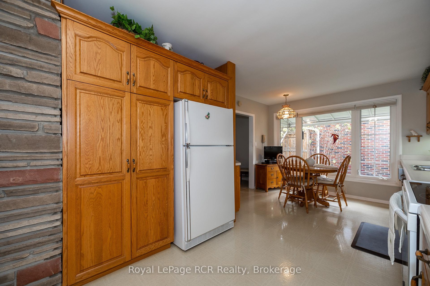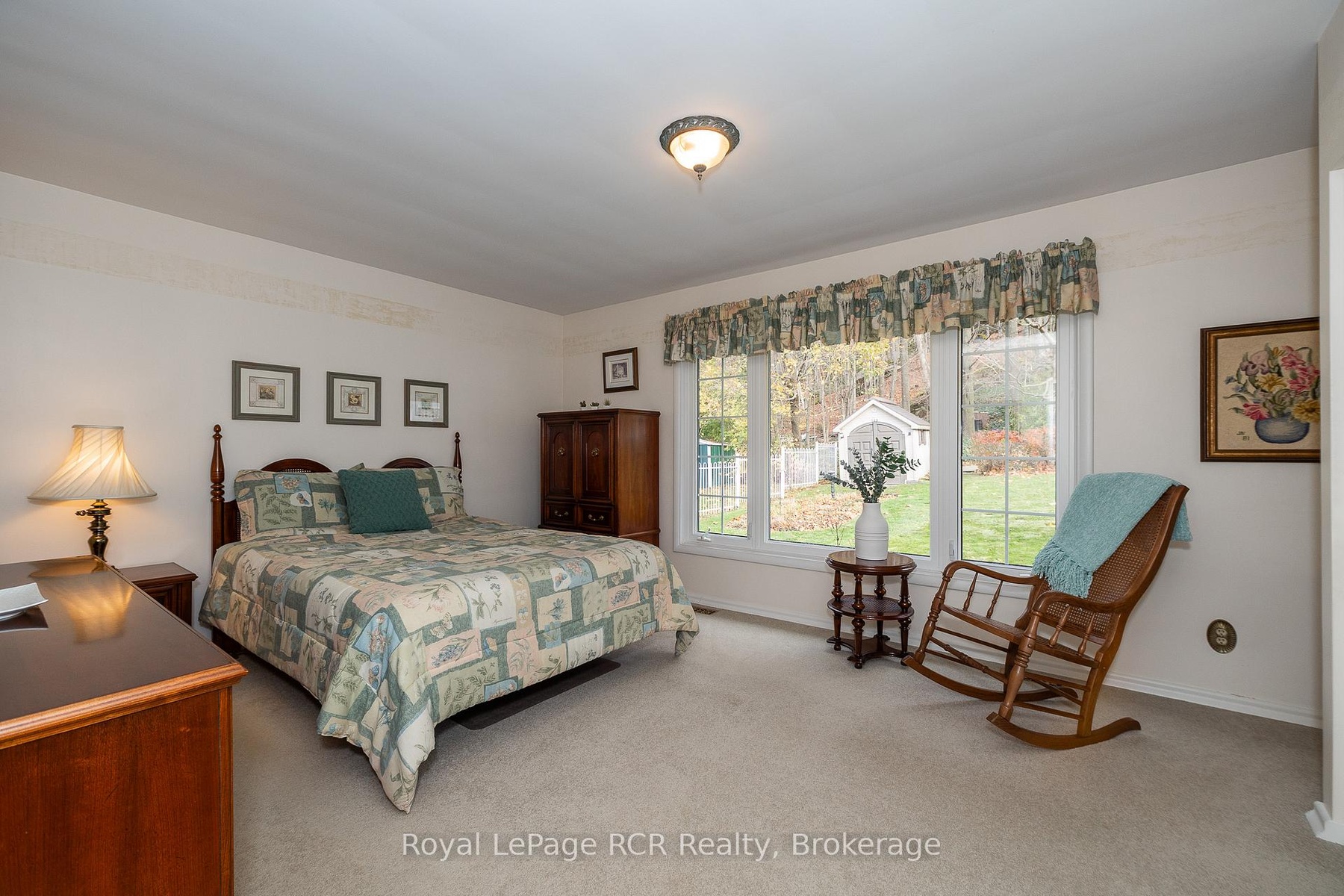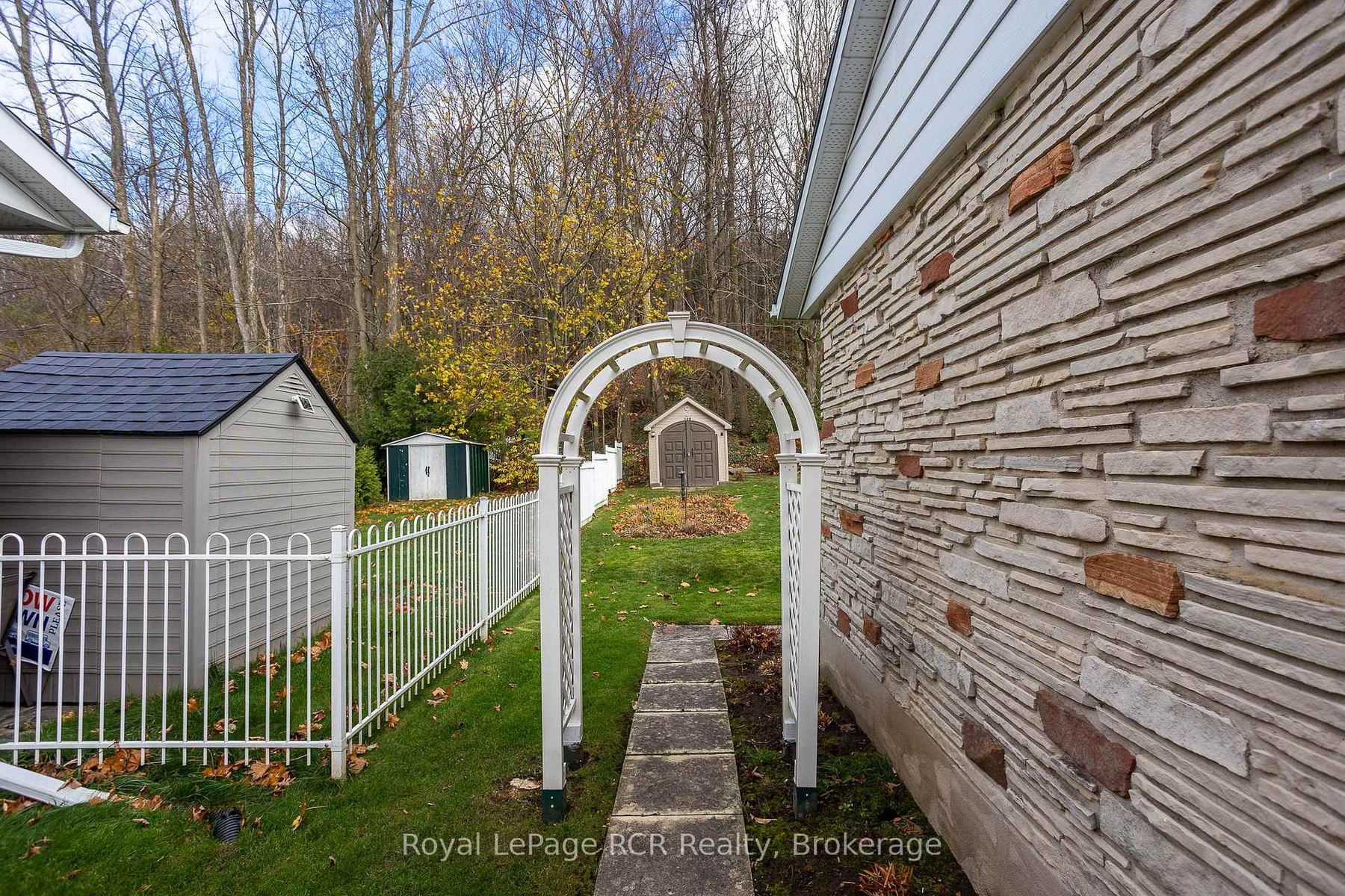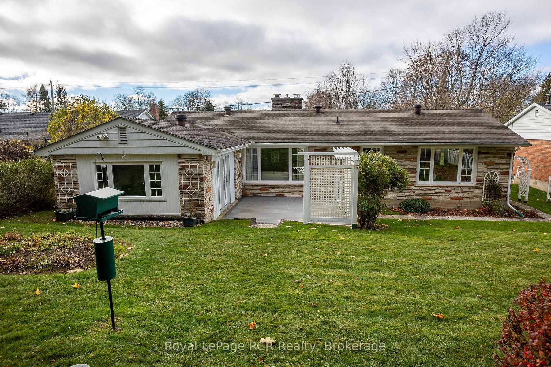 Welcome to this beautifully maintained 3-bedroom stone bungalow nestled in one of the area's most desirable neighbourhoods. Backing directly onto the scenic Bruce Trail, this home is a haven for nature lovers and outdoor enthusiasts. Step inside the generous foyer to a spacious open-concept living and dining area, complete with a cozy fireplace - ideal for entertaining or relaxing evenings at home. The bright, sun-filled main floor family room opens onto a generous composite deck, perfect for hosting gatherings or simply enjoying the outdoors in your own private backyard oasis. The eat-in kitchen features high-quality, custom Brubacher cabinetry and offers a warm, functional space for casual family meals. Throughout the home, you'll find ample storage and thoughtful design that makes everyday living effortless. With a large driveway and attached garage, there's plenty of parking for family and guests. This home combines comfort, style, and location all in one welcoming package.