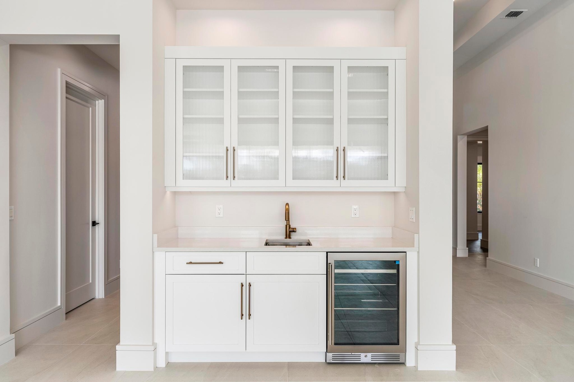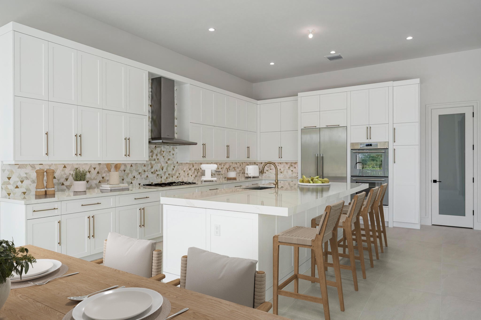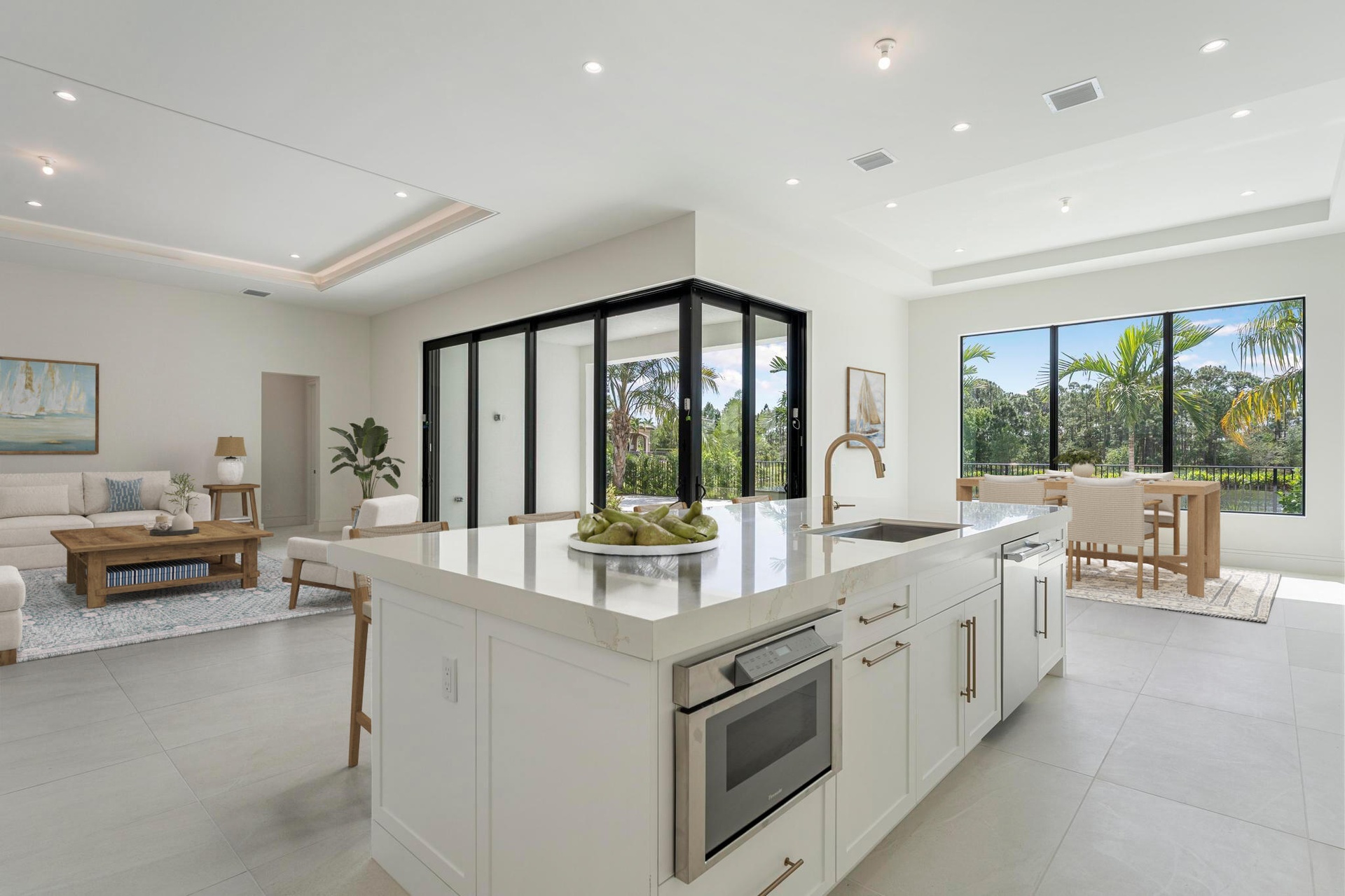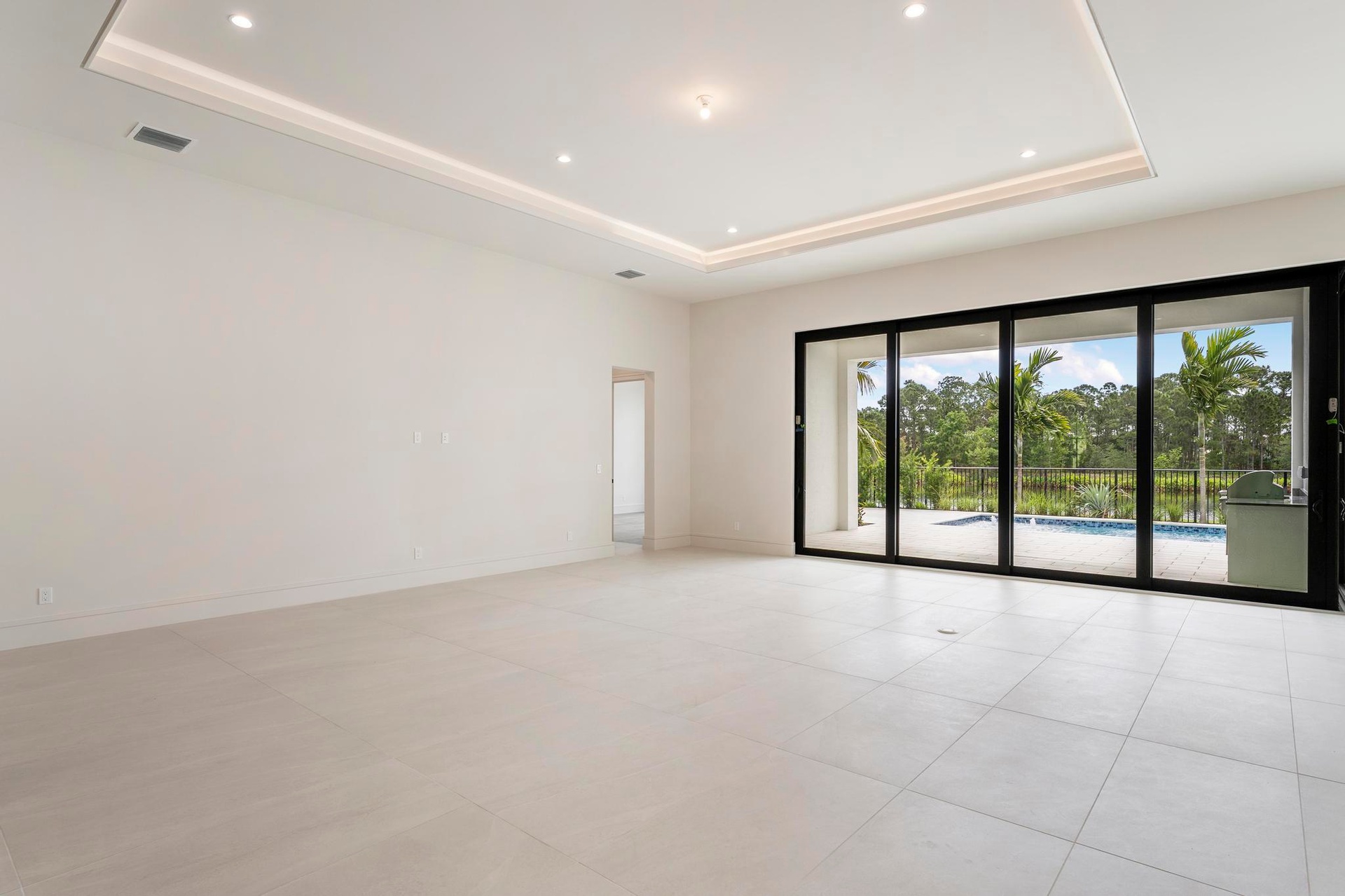 Experience the pinnacle of luxurious living with the newly constructed Augusta Custom Pool Home by Ecclestone Signature Homes. This exquisite coastal modern residence offers breathtaking water views and is located within the highly sought-after Tesoro Club, a prestigious gated golf community. This expansive one-story home features four bedrooms and 4.5 baths, complemented by a wet bar and a walk-in pantry.The open floor plan is perfectly designed for both relaxation and entertaining. The gourmet kitchen is a chef's dream, featuring high-end Thermador appliances, a generous center island with back-to-back cabinetry, elegant quartz countertops, a full backsplash, and stunning cabinetry. Numerous upgrades are included, with project completion anticipated in early spring 2025.